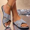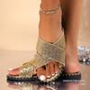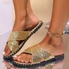 Chinelos Planos de Lantejoulas de Comércio Exterior Europeu e Americano com Tira Cruzada e Aberto para Mulheres Sandálias de Praia e Chinelos