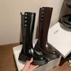 Botas pequenas estilo inglês feminino com boca em v, mas botas de cavaleiro até o joelho 2024 primavera e outono botas plus size botas femininas