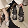 Sapatilhas de Bico Quadrado Sapatilhas de Boca Baixa para Mulheres 2025 Verão Nova Moda Strass Fivela de Pérola Sapatos de Feijão Sapatilhas Femininas