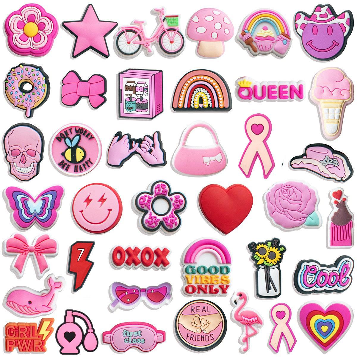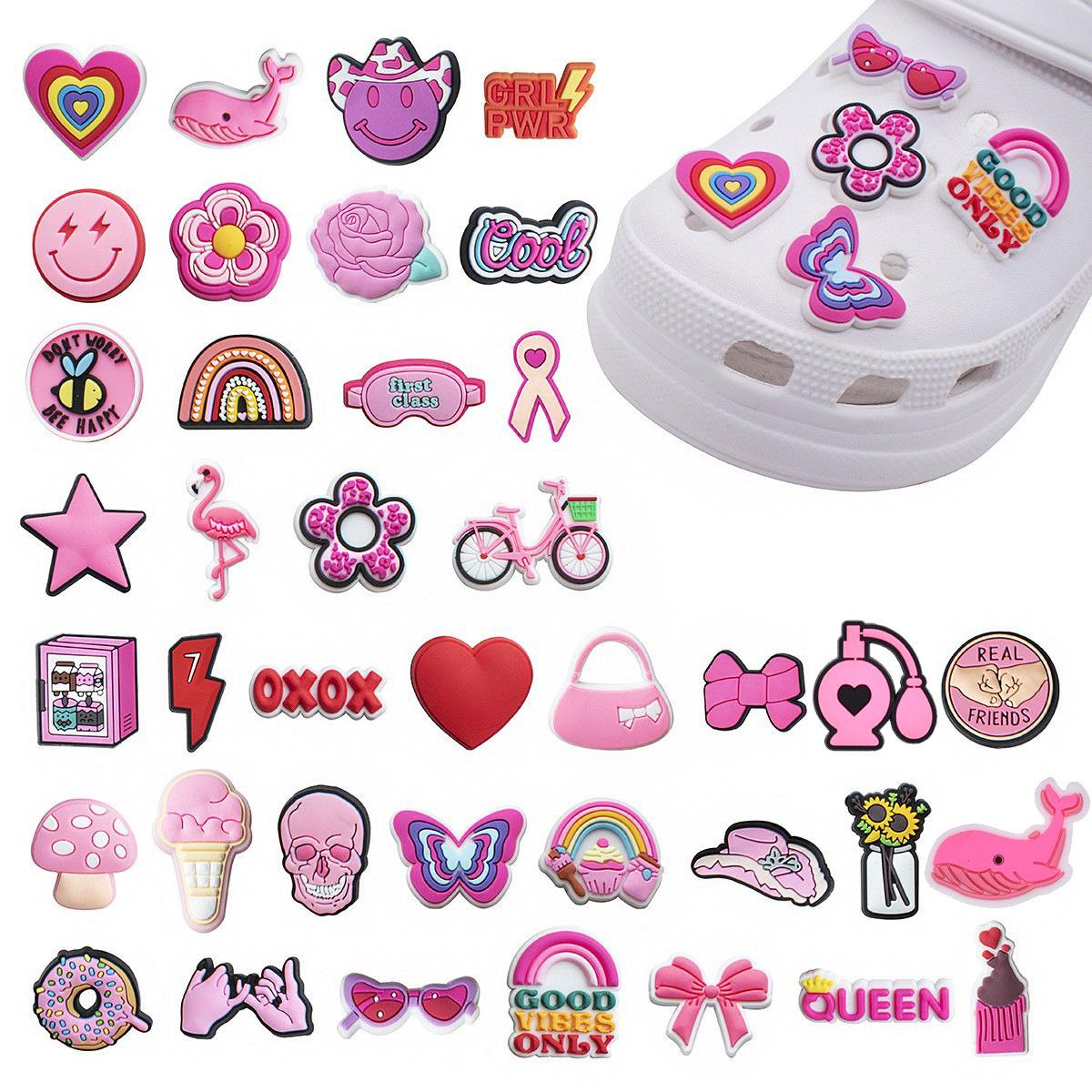 Fivela de Sapato Fofa Rosa de PVC Transfronteiriça Acessórios de Sapato Decoração DIY Menina Acessórios de Sapato com Furos Flor de Sapato de Desenho Animado Mancha