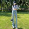W00689 Estilo Coreano Simples Casual All-match Cintura Alta Elástico Slim Look Retro Jeans Reto 2024 Verão Novo