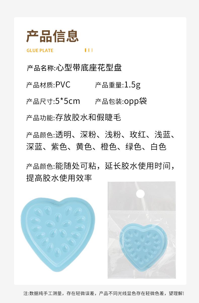 Bandeja Atacado em Forma de Coração com Base, Bandeja em Forma de Flor para Cola de Cílios Postiços, Almofada de PVC, Bandeja em Forma de Flor para Cola de Cílios Auto-Adesiva