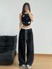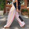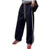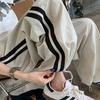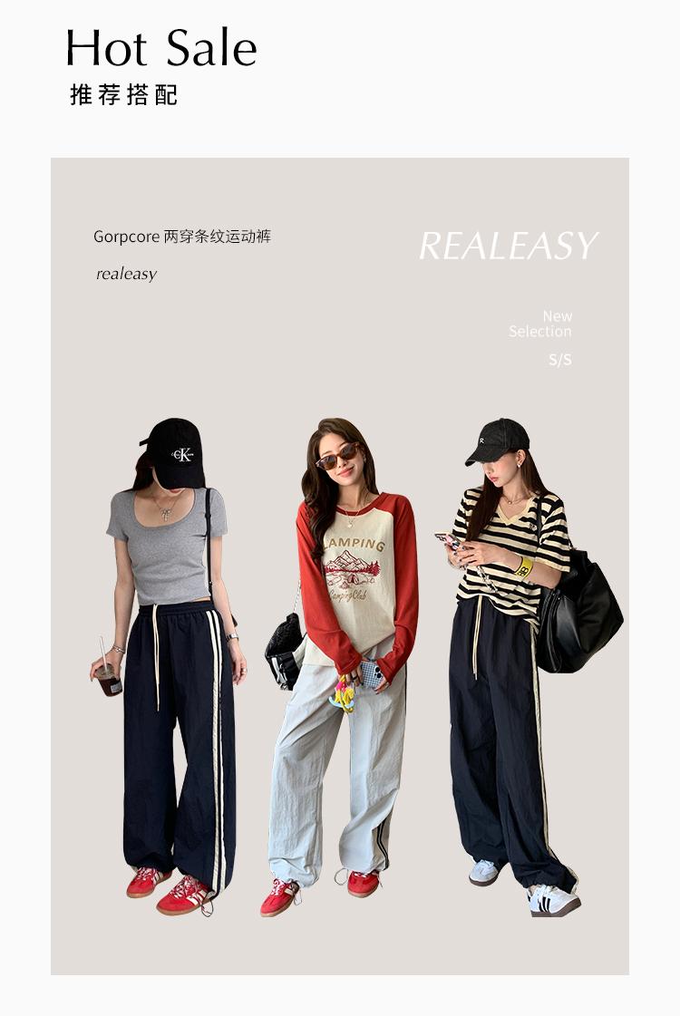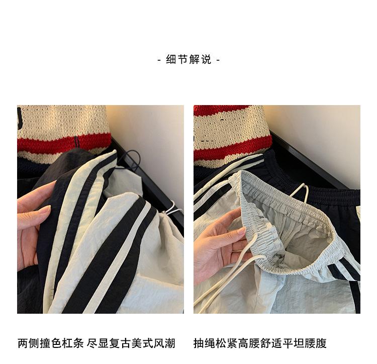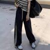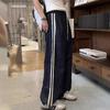 Outono 2024 Novas Calças Esportivas Listradas de Dois Desgastes Calças Retas Soltas de Verão Feminino Calças Largas Calças Casuais
