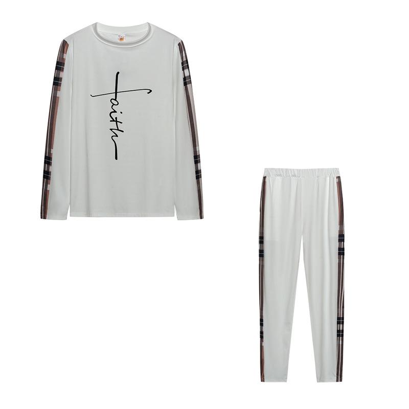 2023 Roupas Femininas Transfronteiriças Amazon Moda Europeia e Americana Estampada Manga Comprida plus size Solta Terno Casual Feminino de Duas Peças