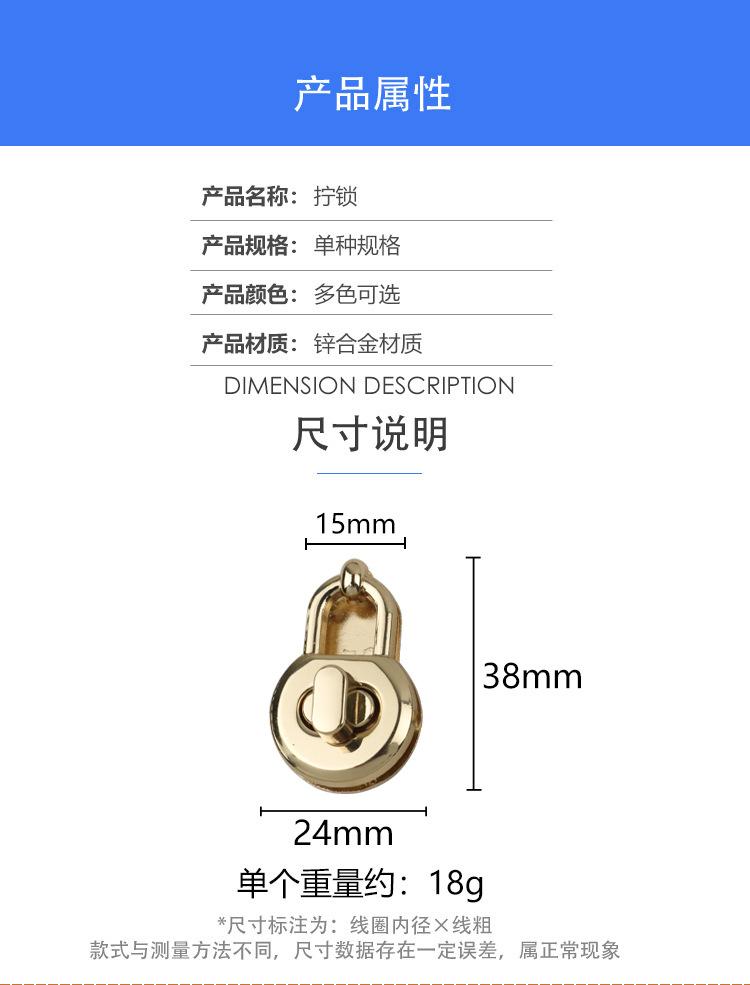 Diâmetro externo 24mm bolsa bolsa decorativa acessórios de hardware para bagagem trava de torção liga de zinco trava de interruptor