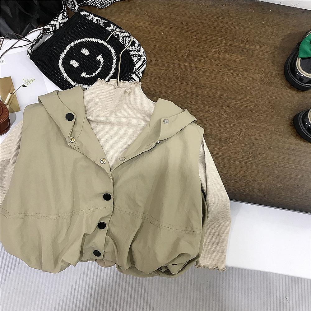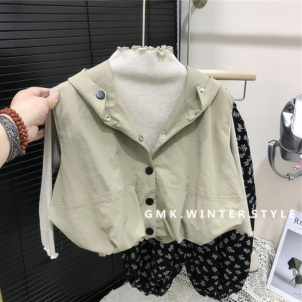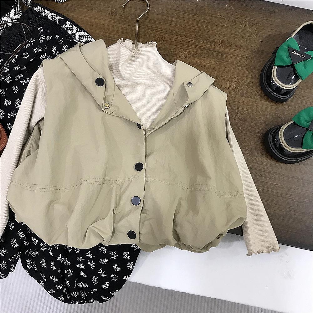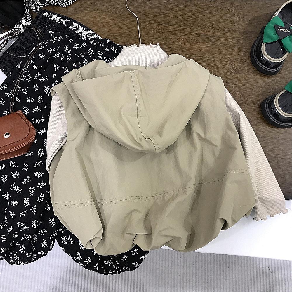 Estilo coreano Roupas infantis Outono Novos estilosos infantis Moda Solta Sem mangas Colete com capuz Meninos e meninas Top da moda Comércio exterior