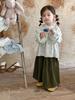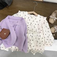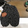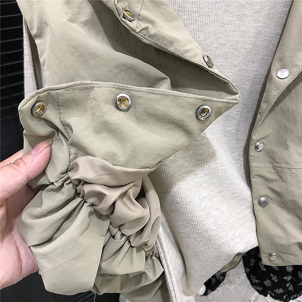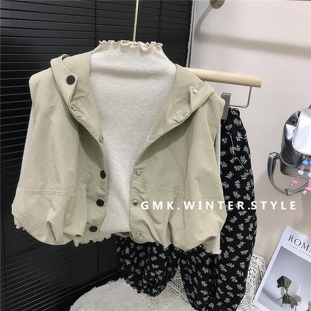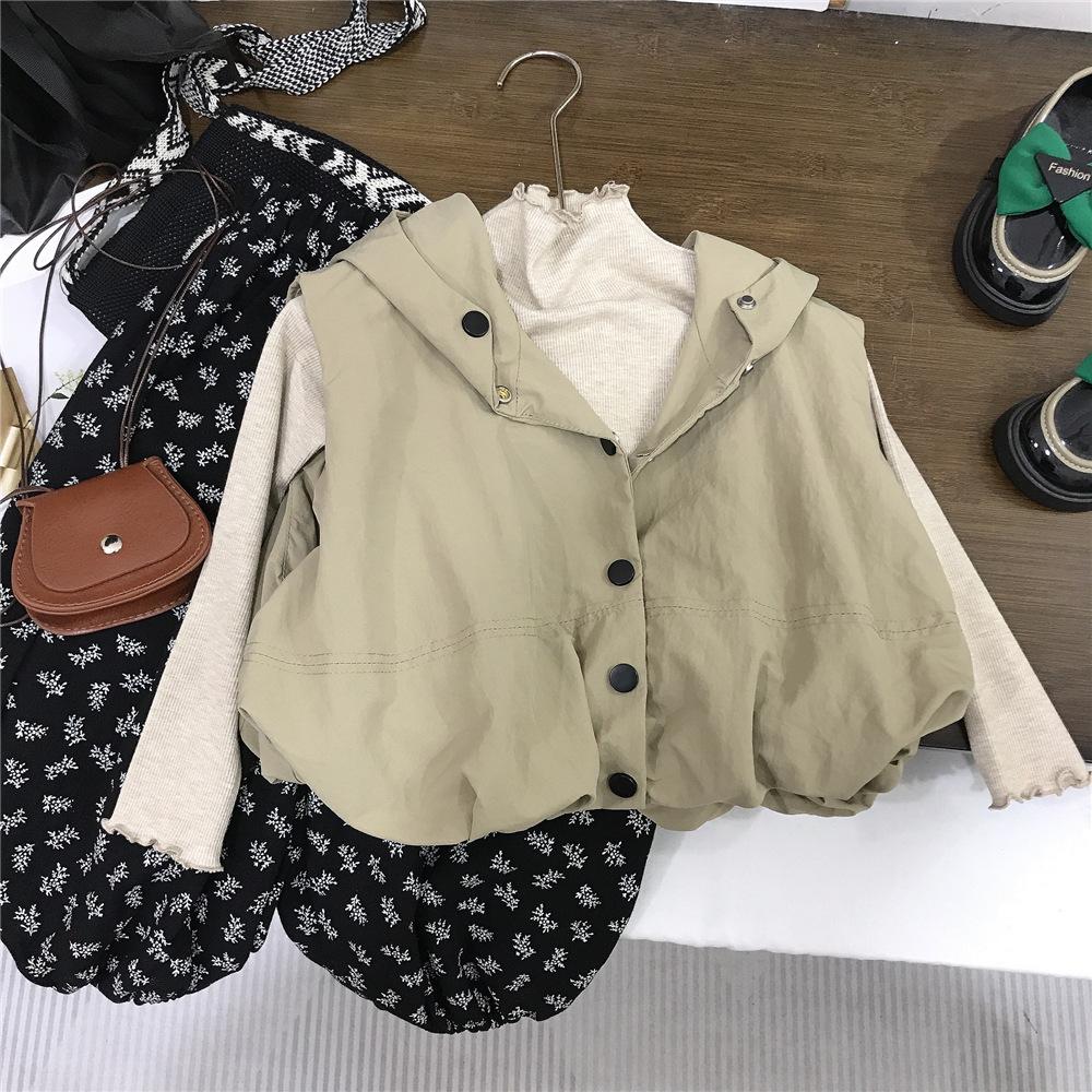 Snap hooded vest, Textured fungus bottoming shirt khaki, White floral bloomers