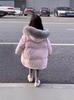 2025 Novo Estilo Jaqueta Infantil Acolchoada com Capuz e Gola Grande de Pele Elegante para Meninas Casaco de Algodão de Comprimento Médio Infantil Jaqueta Quente Espessa