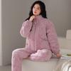 Pijama de inverno feminino de três camadas de algodão, forro de lã espessada, gola redonda, fofo, plus size, inverno, grosso, roupa externa, roupa para casa