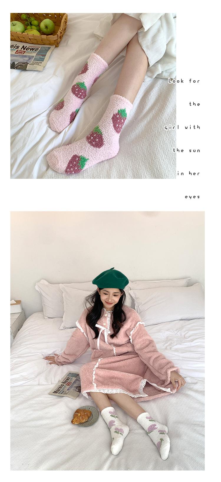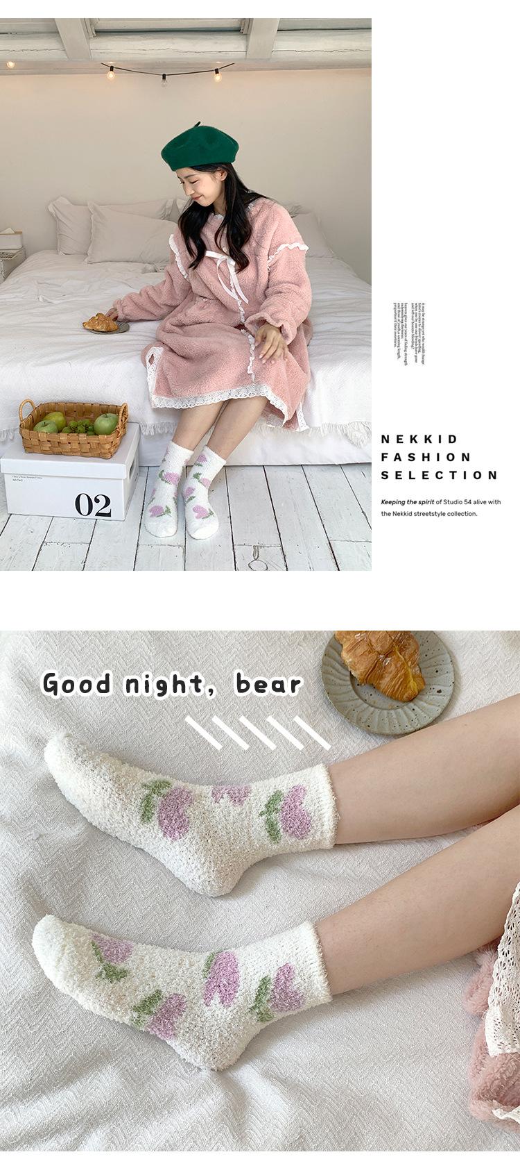 Meias de Veludo Coral para Mulheres Japonesas Desenho Animado Meias de Chão Fofas Meias de Inverno Forradas de Lã Engrossadas Quentes para Casa Lua Meias de Dormir