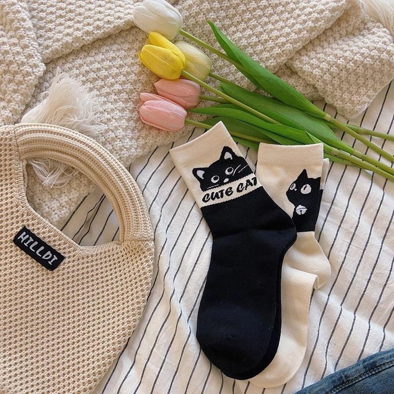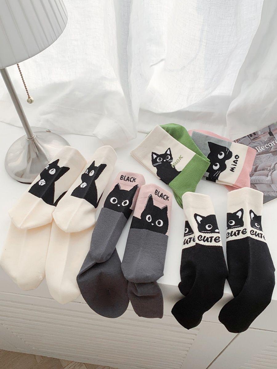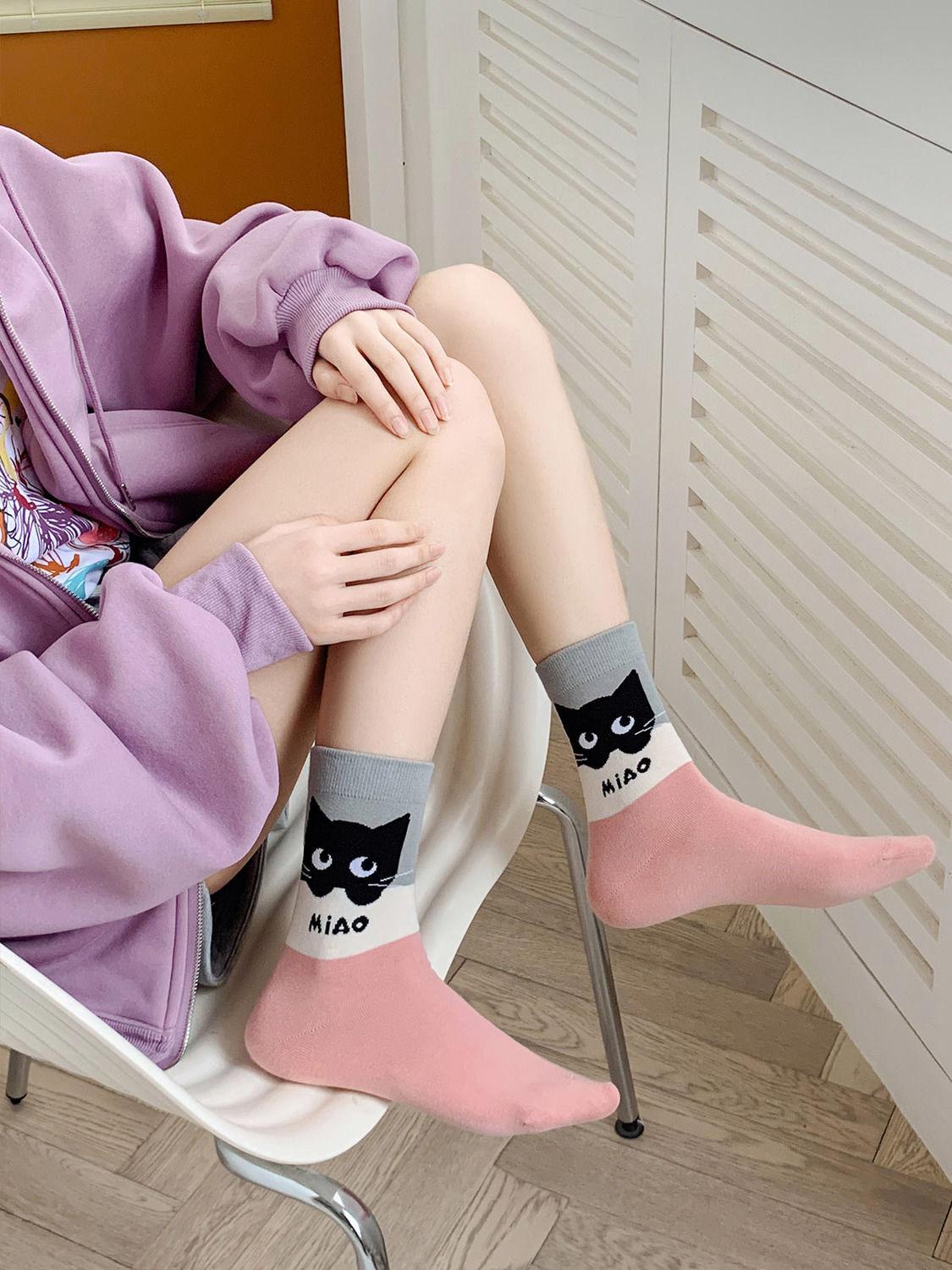 Meias Fofas Gatinho Meias Femininas Ins Na Moda Primavera e Outono Estilo Japonês Estudantes Dos Desenhos Animados Verão Meias Finas Estilo Academia