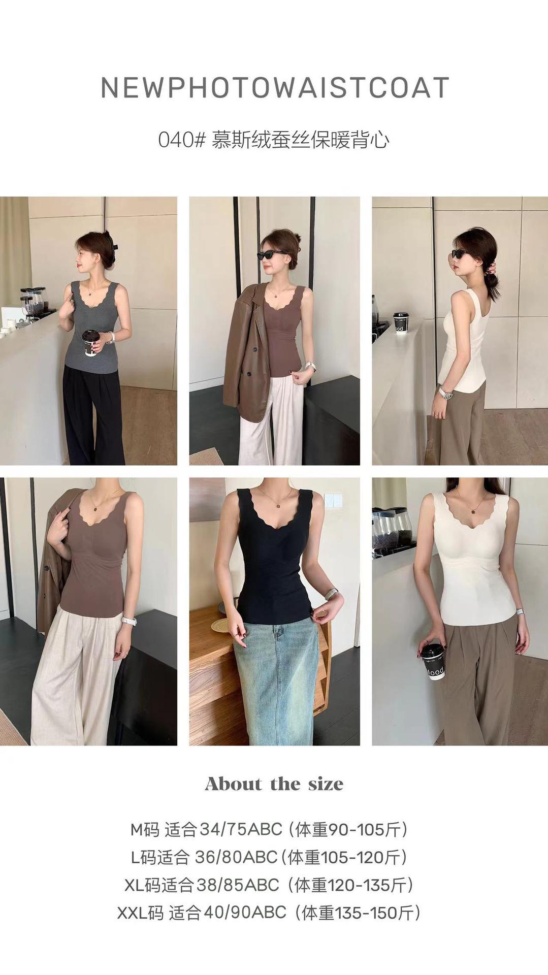 039 Colete Quente Outono e Inverno Novo Quente com Almofada no Peito Lã de Ovelha Base de Aquecimento Colete para Mulheres