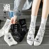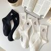 Meias de Cor Pura Estilo Coreano para Mulheres Primavera e Verão Meias de Algodão Respiráveis Estilo Preppy Meias de Meia-Panturrilha para Meninas Meias Simples de Estudante com Bordas de Fungo