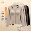 Camisa Base de Veludo para Mulheres com Decote Redondo Sem Costura Roupa Interna de Inverno Nova Roupa de Outono Quente Engrossada Interior Forrada de Lã Quente Top