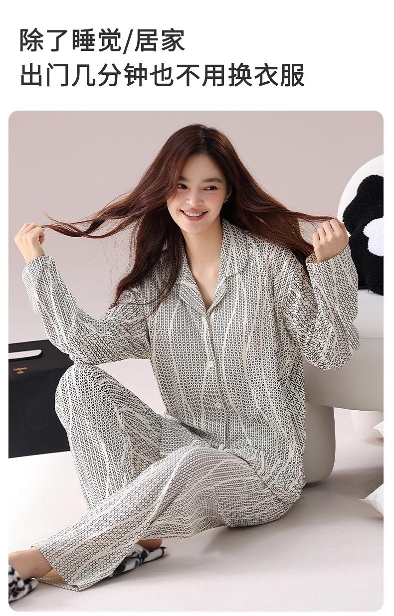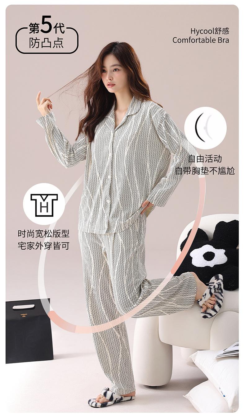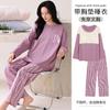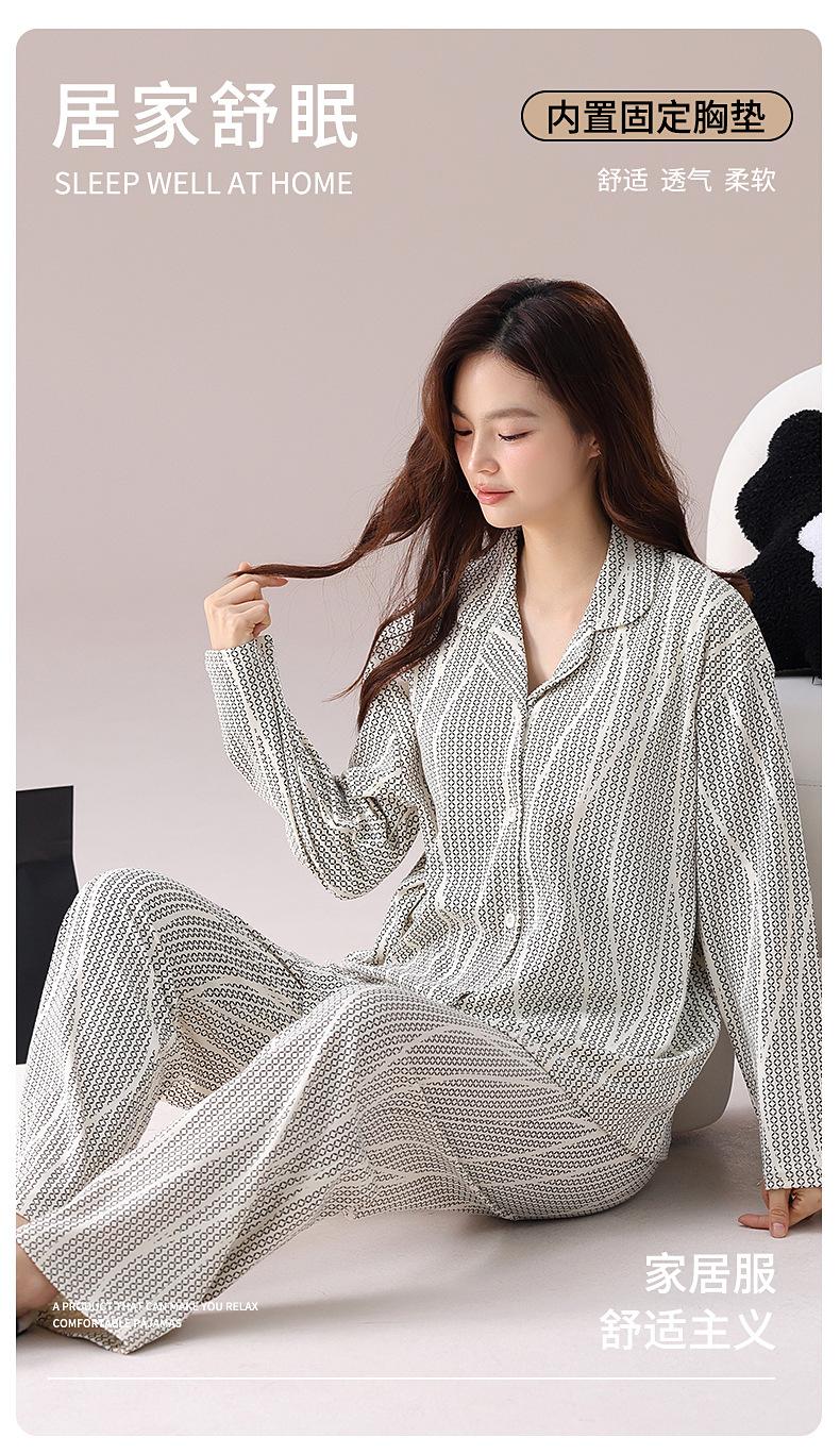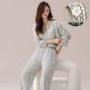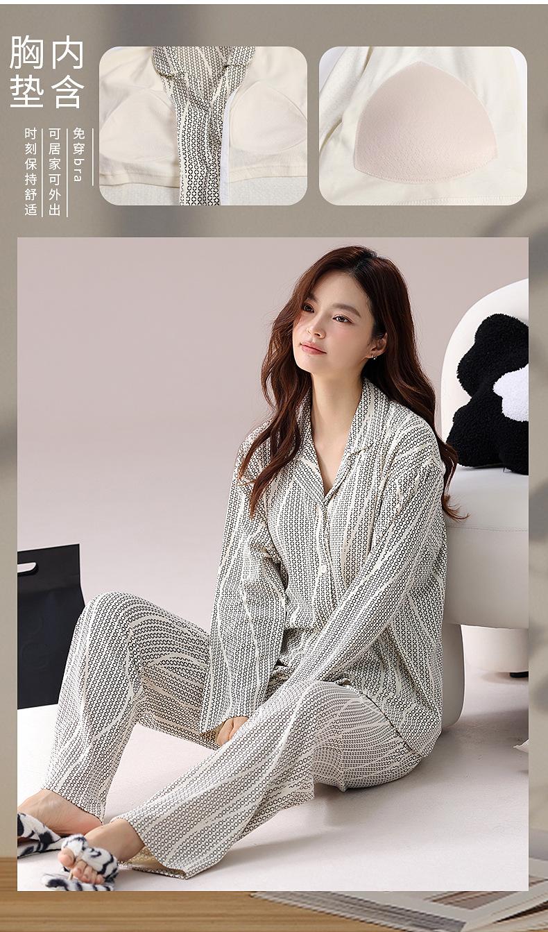[Puro algodão] 40 duplo-face pijamas senhoras com almofada no peito primavera e outono e inverno de manga comprida roupas para casa terno listrado casual