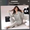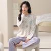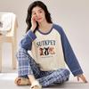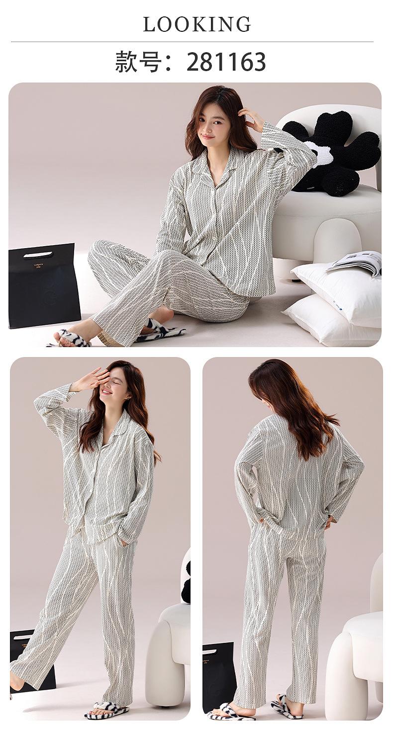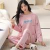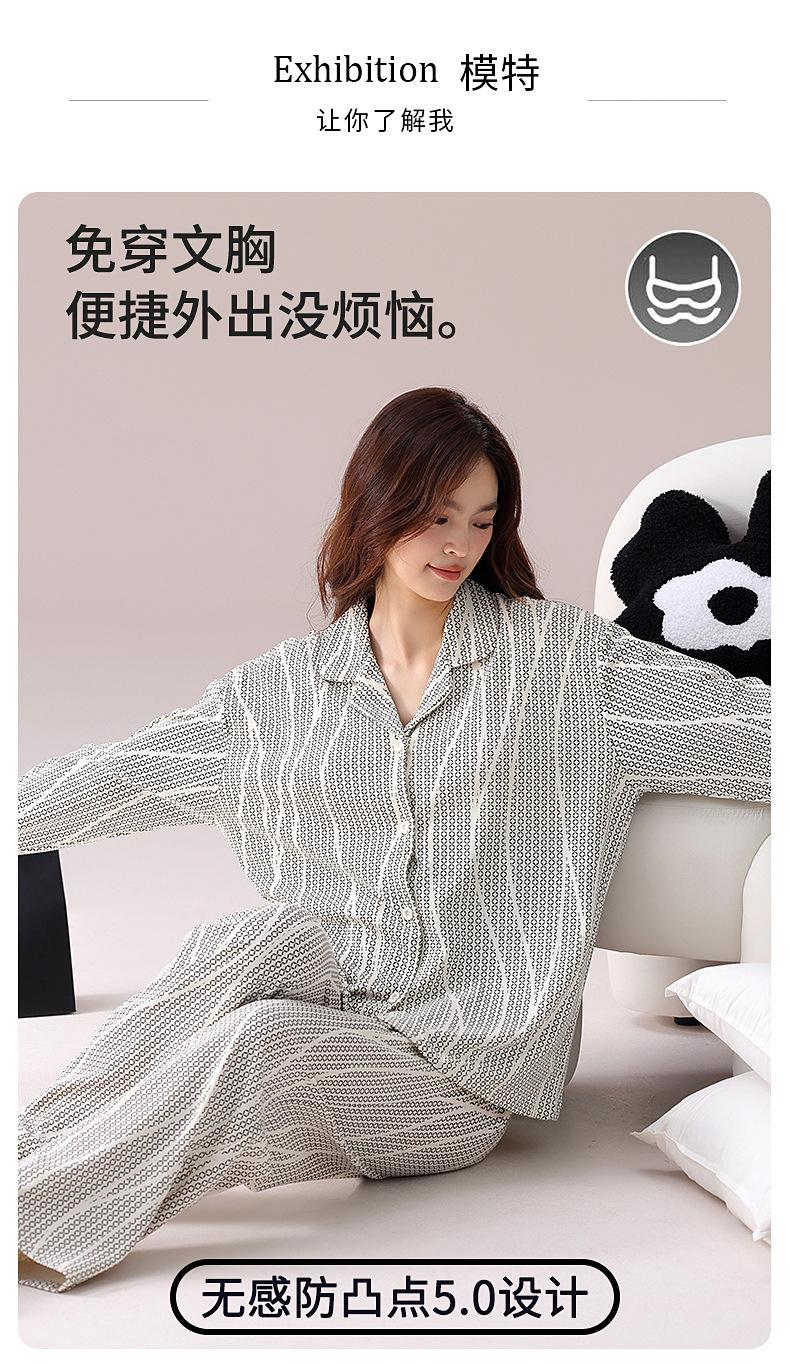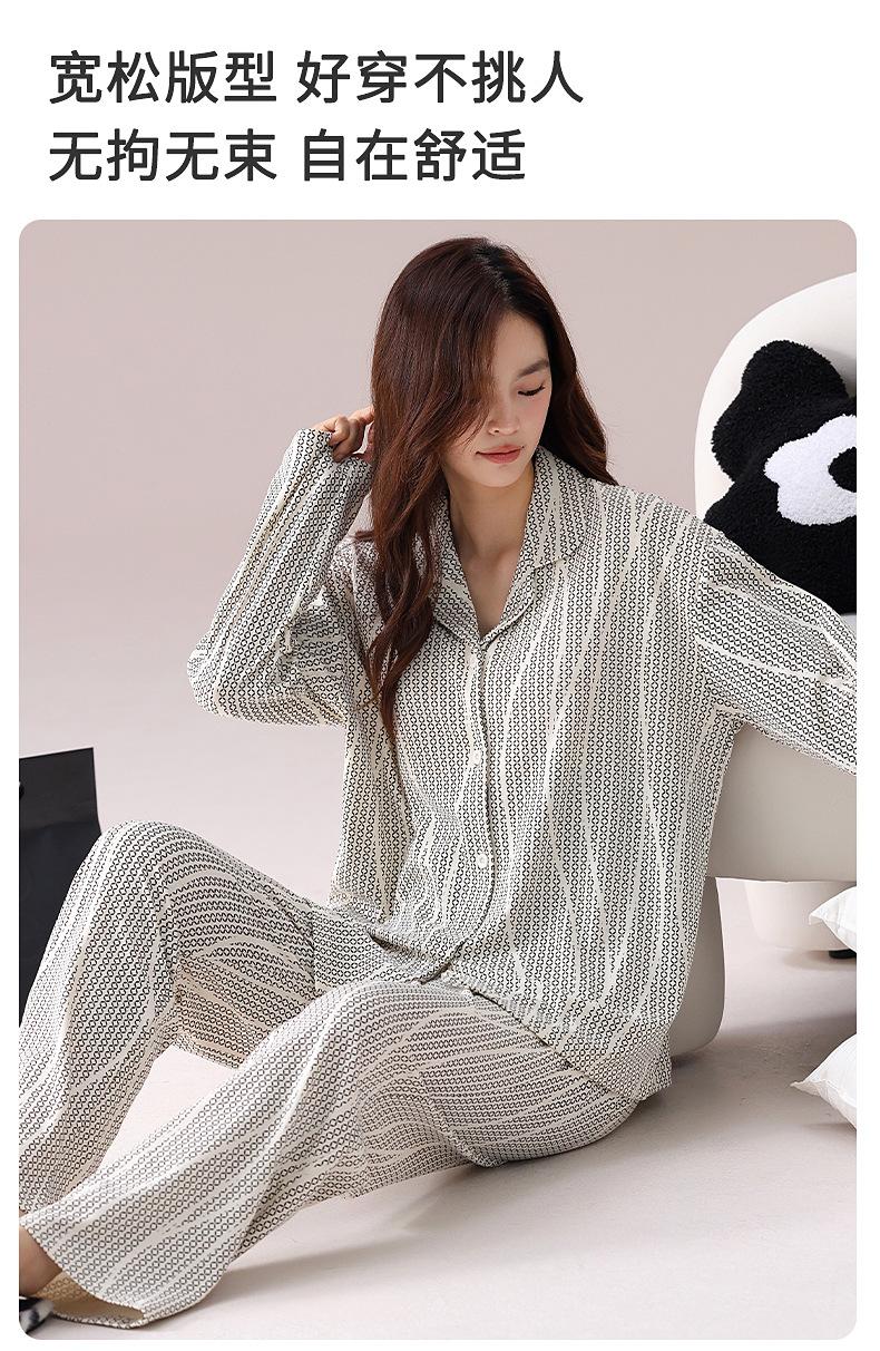 [Puro algodão] 40 duplo-face pijamas senhoras com almofada no peito primavera e outono e inverno de manga comprida roupas para casa terno listrado casual
