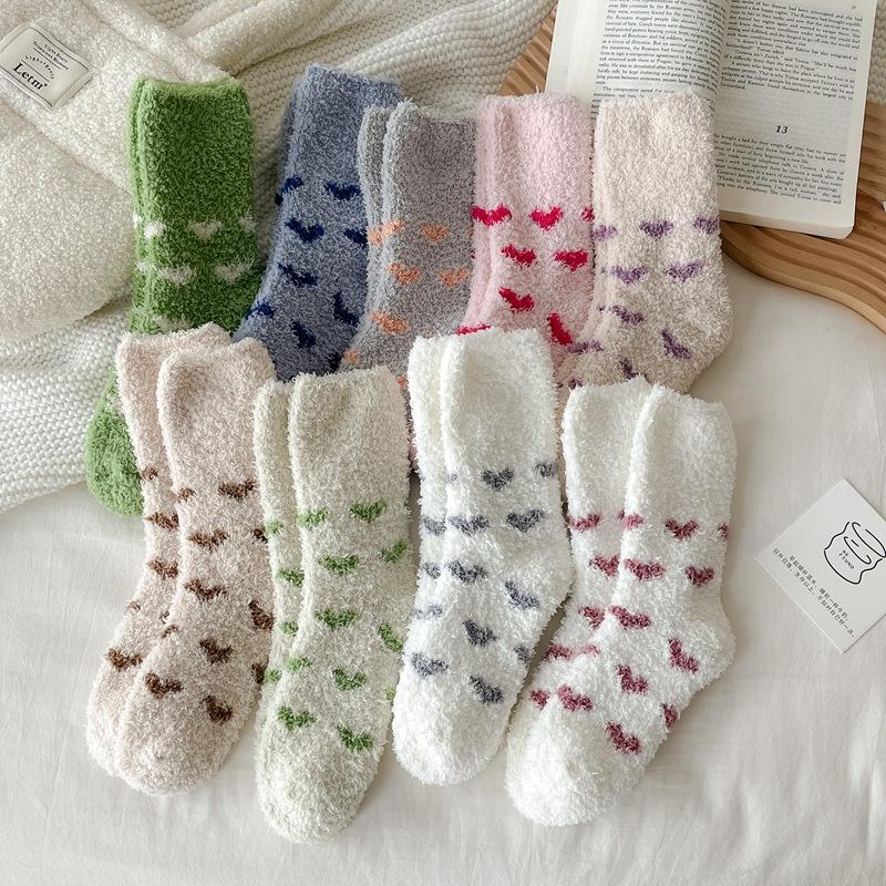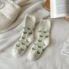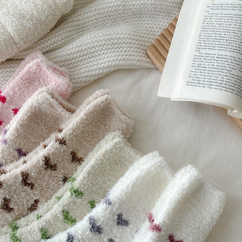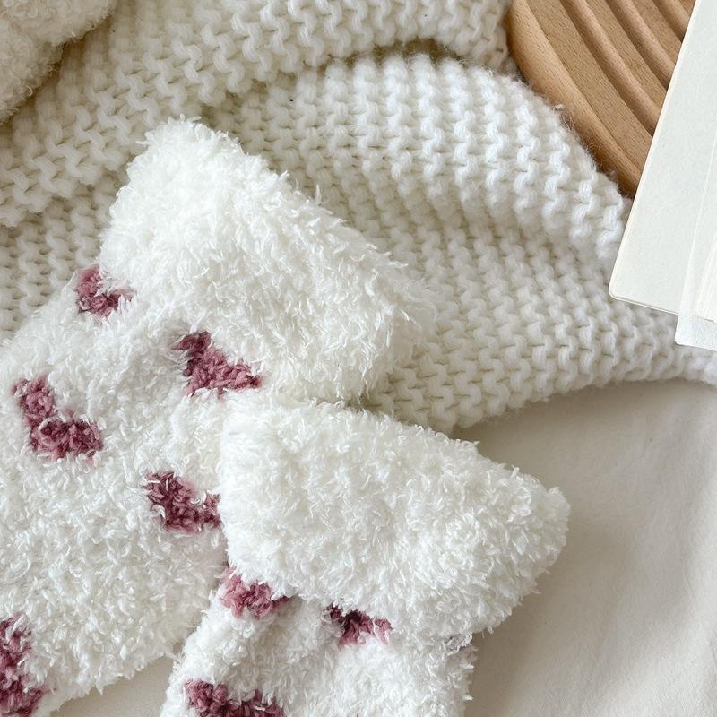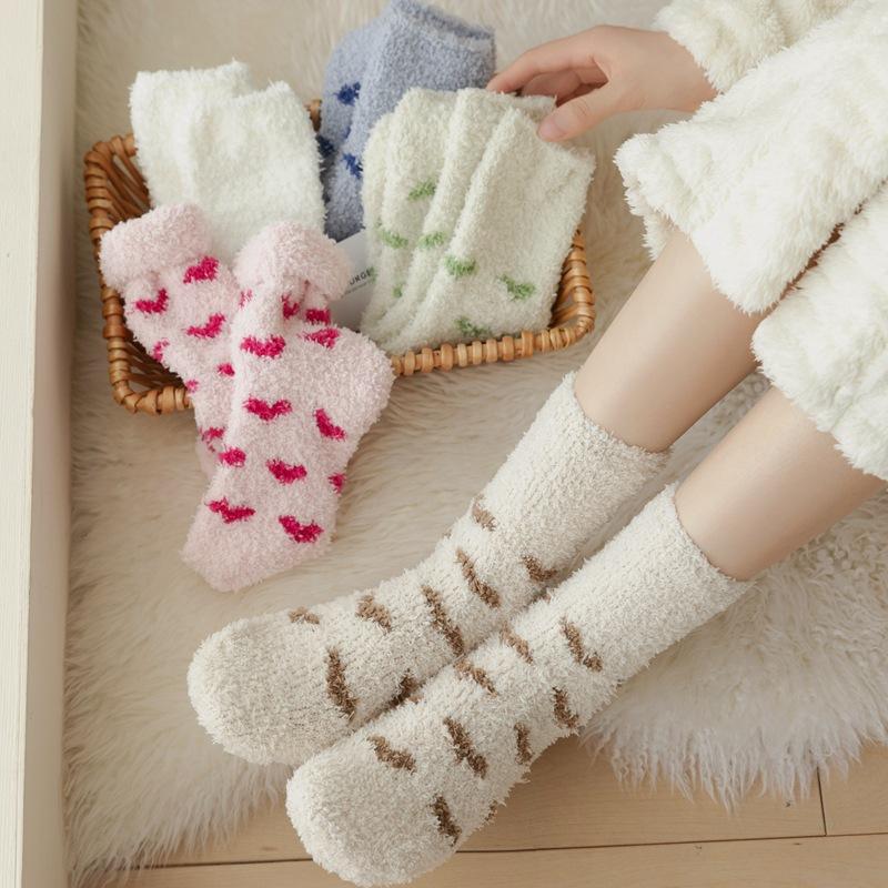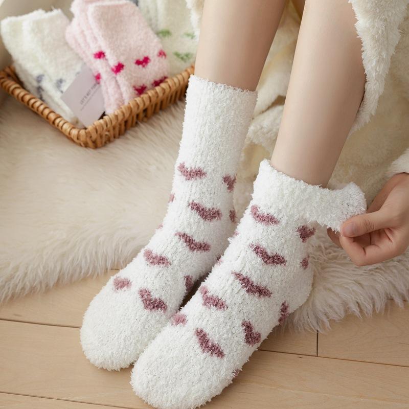 Meias de Lã Coral Moon para Mulheres Meias de Algodão Grossas Forradas de Lã Pós-parto Meias de Dormir Quentes para Casa Outono e Inverno