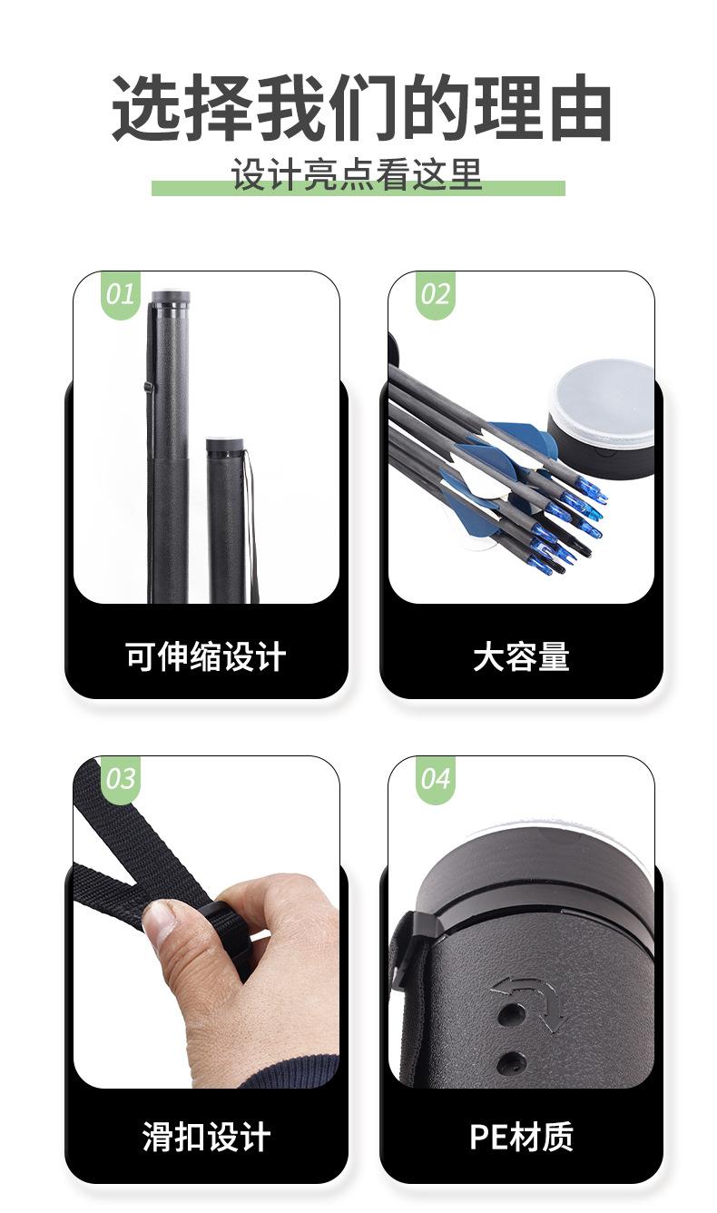 Em estoque atacado retrátil PE barril de seta de grande capacidade seta tubo de armazenamento ombro-back design proteção arco e flecha acessórios