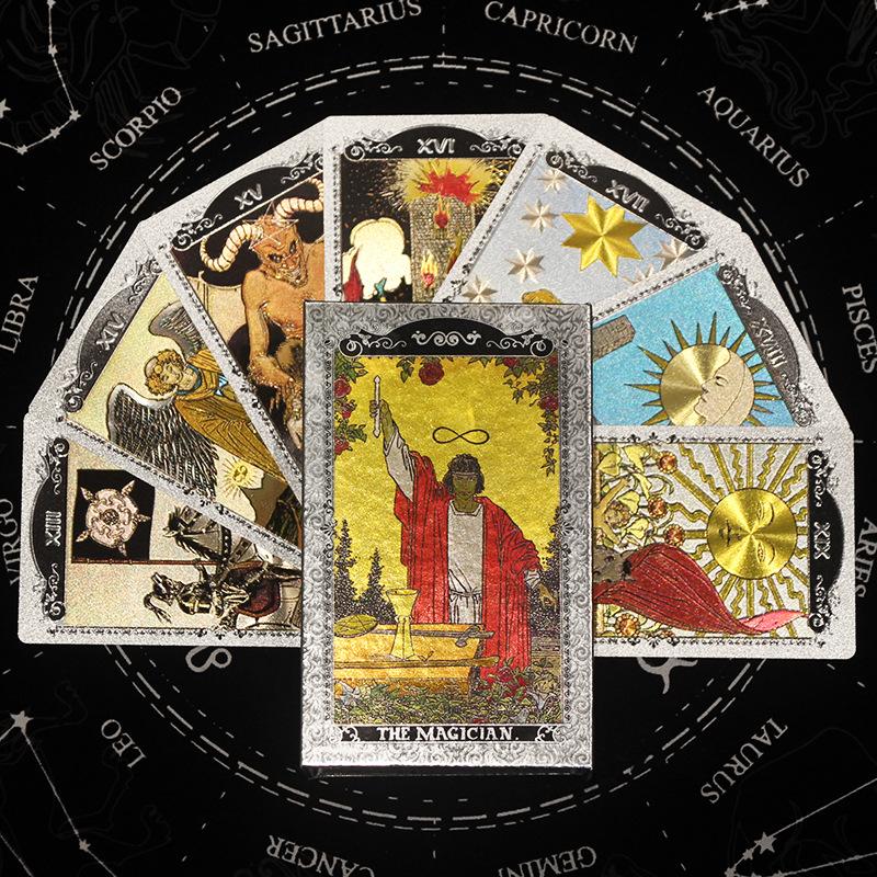 Cartas de tarô ao redor do sol e da lua Cartas de tarô de plástico PET à prova d'água jogo de cartas de mesa de jogo Cartas de tarô em estoque lote