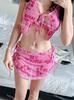 Novo estilo coreano branco puro desejo estilo split maiô feminino emagrecimento sexy praia barriga cobrindo carne de quatro peças biquíni