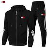 Marca de moda de outono europeia e americana transfronteiriça com capuz e capuz estampado para homens e mulheres, conjunto de duas peças de terno esportivo casual para casais