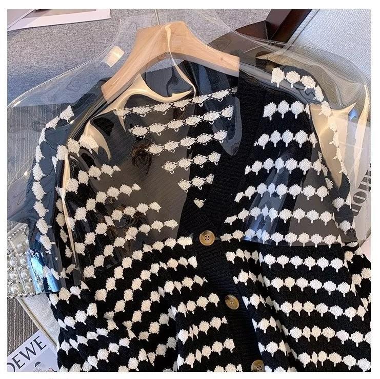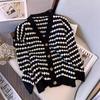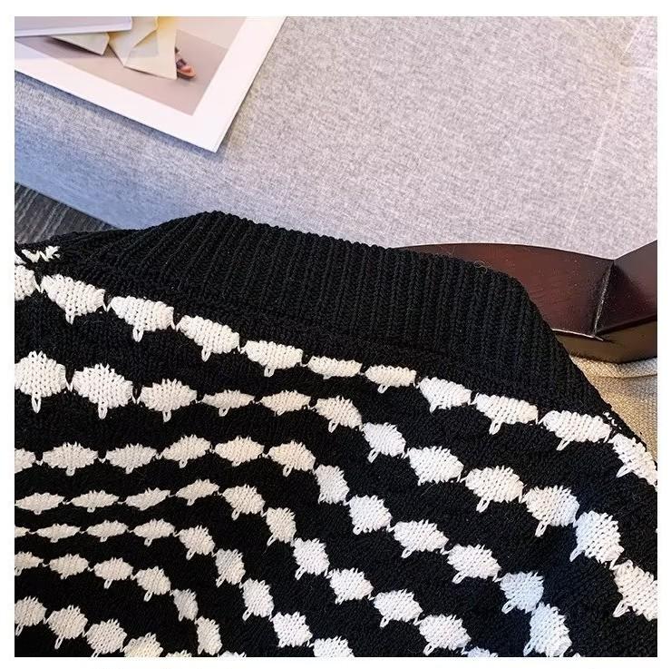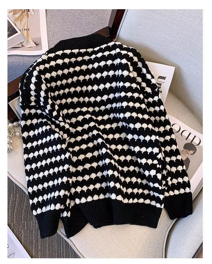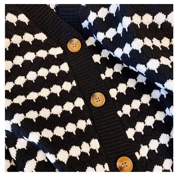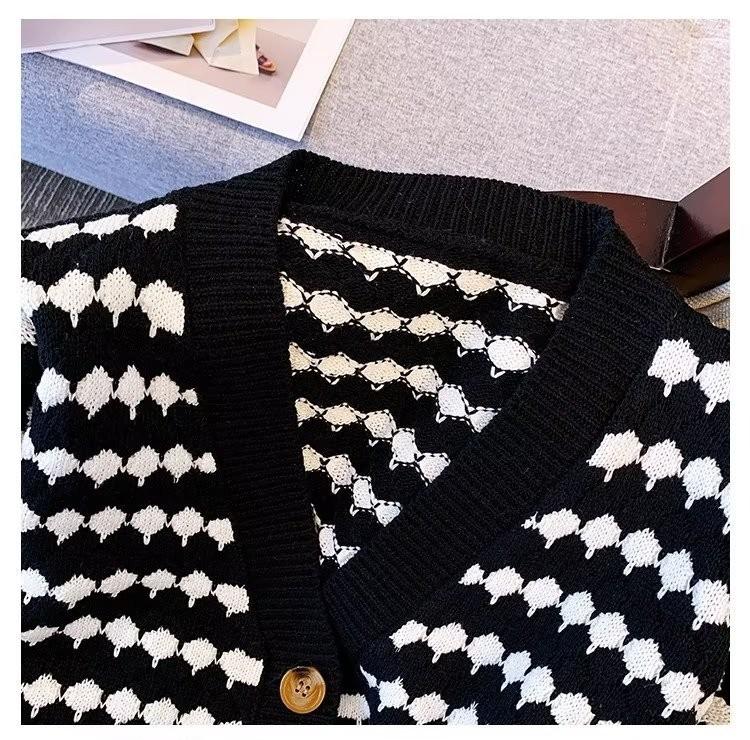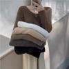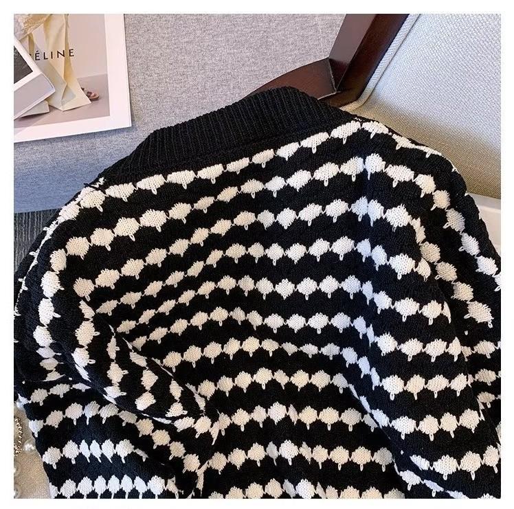 Casaco Feminino de Outono e Inverno Novo Elegante Exterior Equitação Suéter de Malha Listrado Contraste Cor Base Suéter Cardigã Feminino com Decote em V