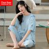 Pijama coreano de seda de imitação feminino bonito doce coração feminino shorts de manga curta de seda de gelo roupas para casa verão conjunto de duas peças ao vivo