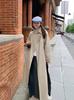 Casaco de trincheira de gola alta de estilo britânico feminino outono 2023 novo design minimalista de luxo silencioso sentindo-se solto casaco longo até o joelho