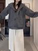 Cardigan com capuz versátil feminino outono e inverno estilo coreano comprimento médio estilo preguiçoso chapéu de bruxa casual casaco de malha