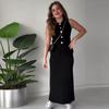 2024 Verão Novo Europeu e Americano Amazonas Cor Sólida Feminina Sem Mangas Colete Fino Cintura Alta Quadril Saia Terno