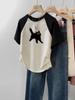 Camiseta de ombro feminina de manga curta verão 2024 nova slim-fit solta manga raglan curto contraste cor desenho animado top ins na moda