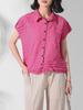 Blusa Simples Feminina da Moda Nova Plissada com Colarinho de Camisa e Botões, Design de Top Curto, Plissada à Mão, Versátil, Manga Curta, Roupa Externa