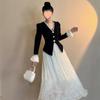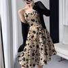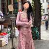 Estação Europeia 2025 Primavera e Outono Vestido Floral de Manga Longa para Chá da Tarde Feminino Conjunto de Duas Peças Cardigã Estilo Chic Francês