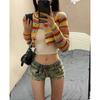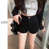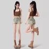 2024 Verão Novo Americano Hot Girl Cintura Alta Hot Pants Zíper Lateral de Metal Desgastado Shorts Jeans Ultracurtos para Mulheres