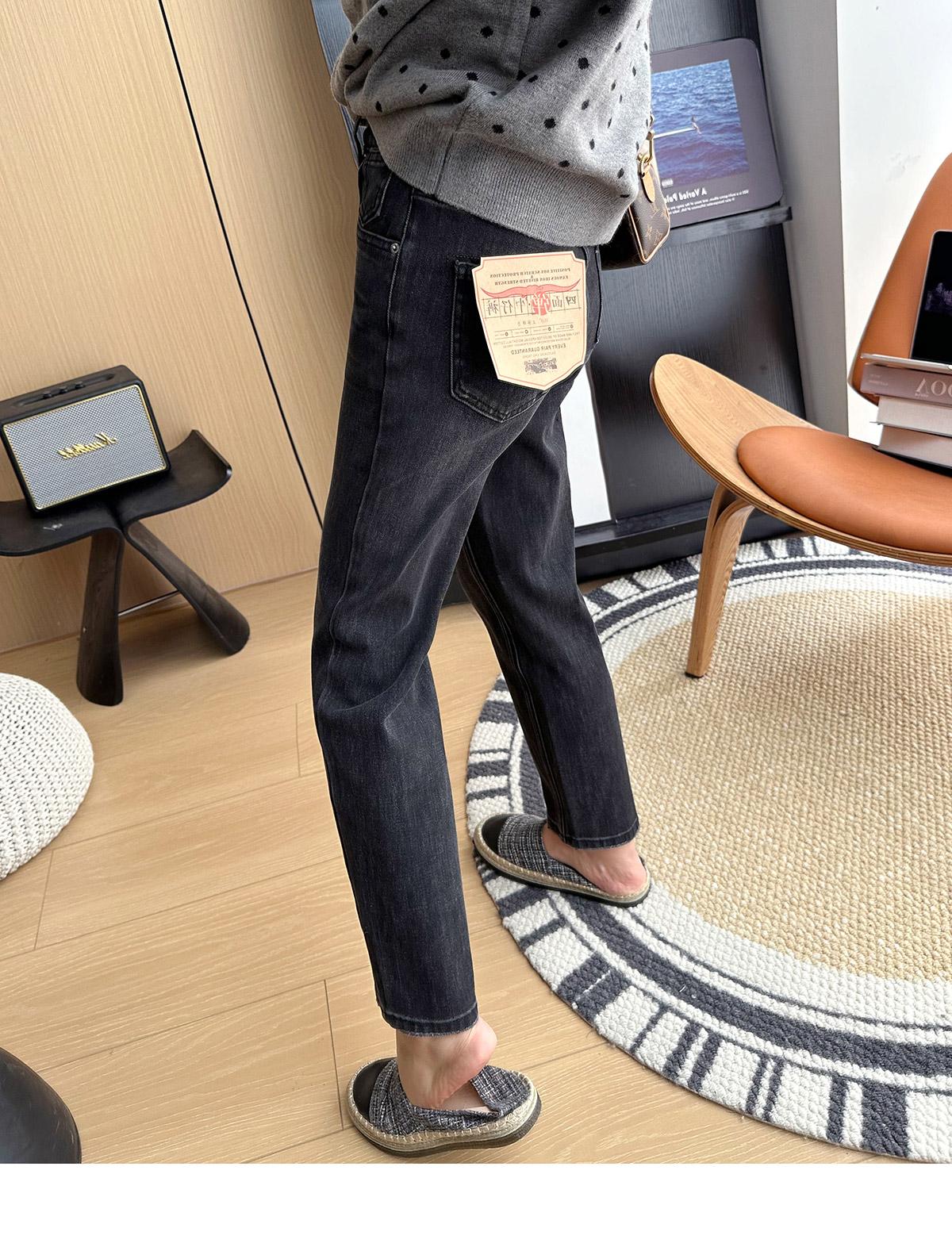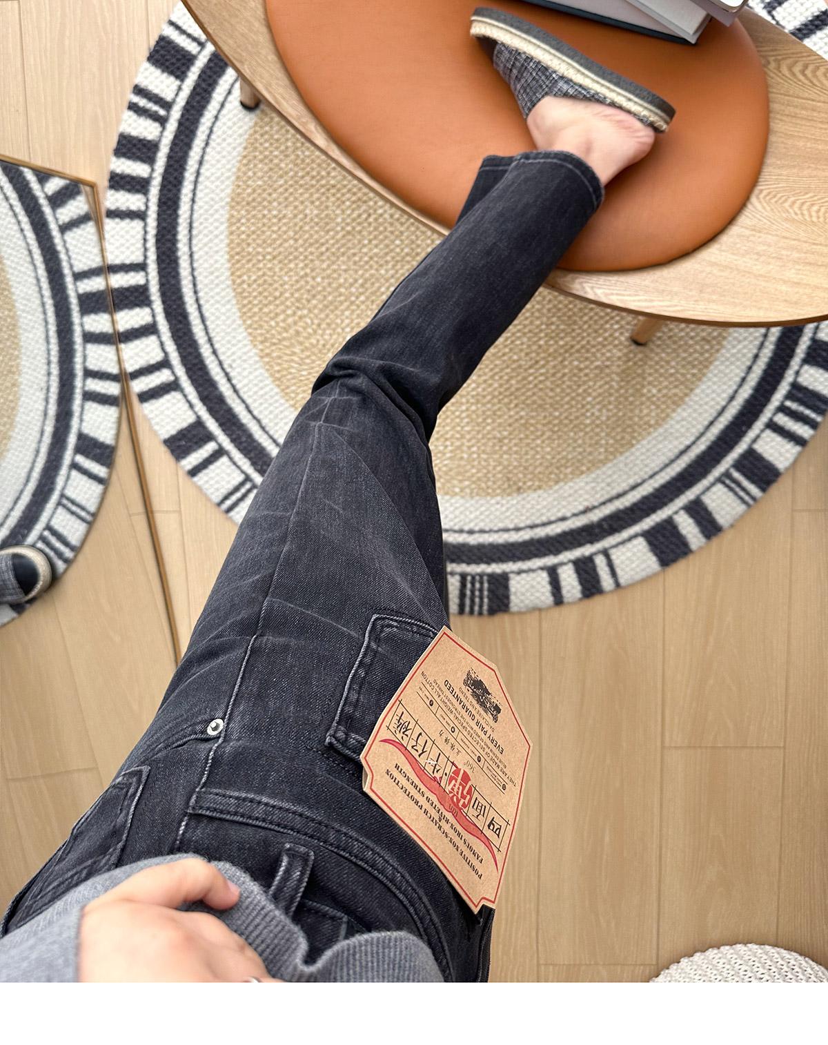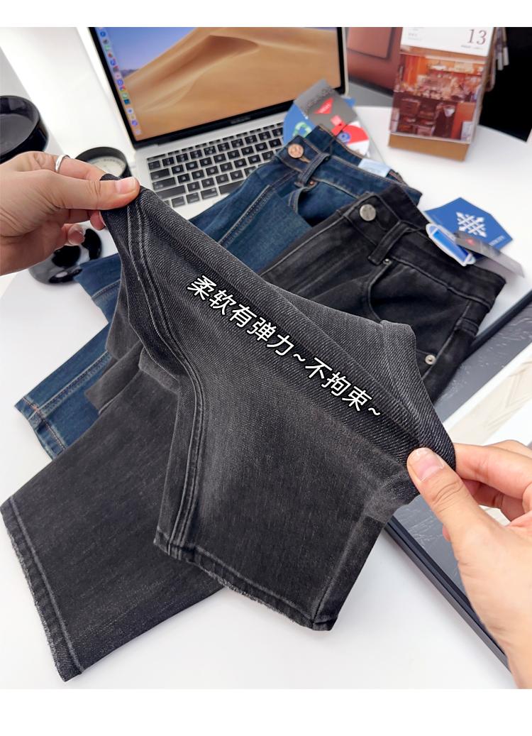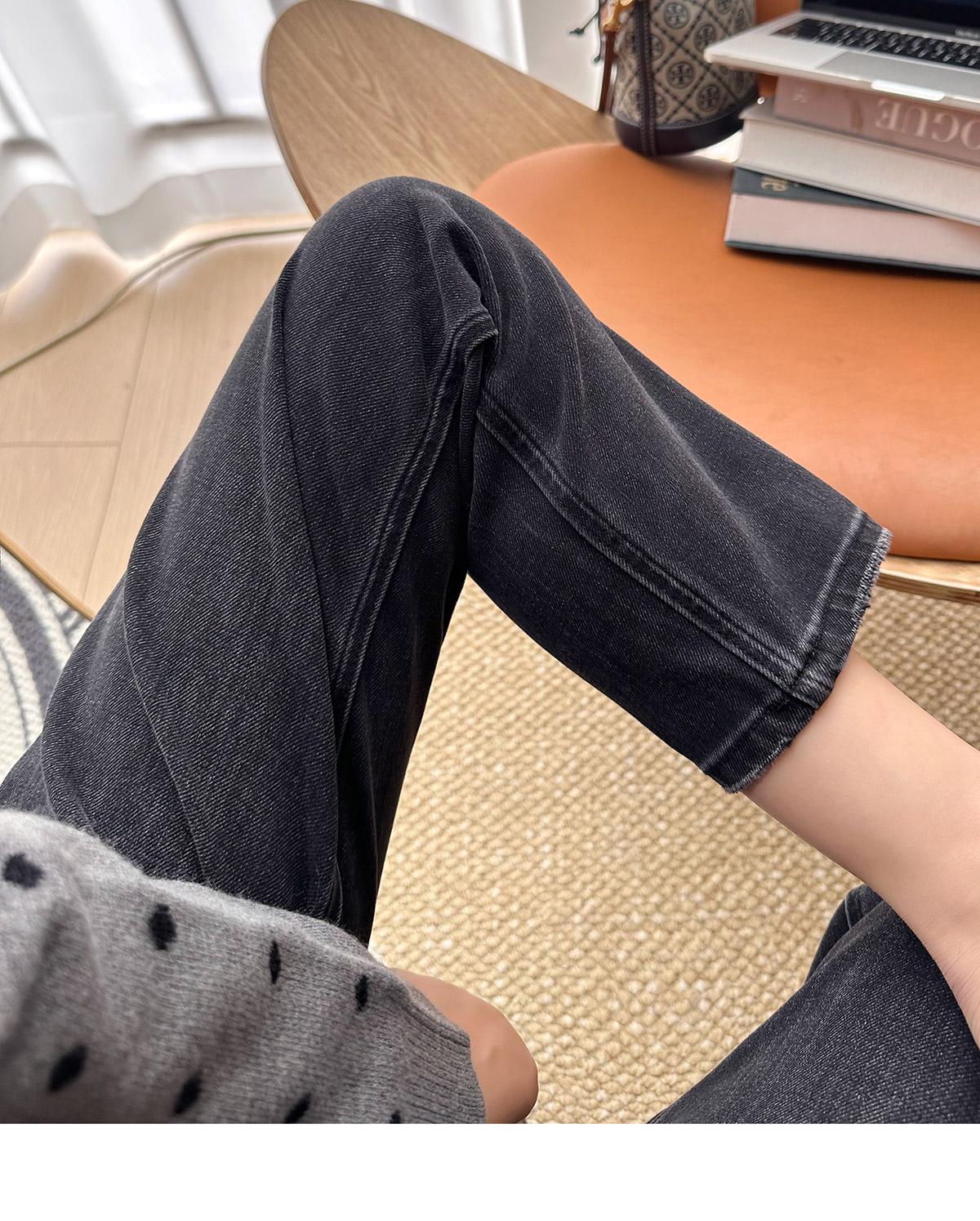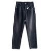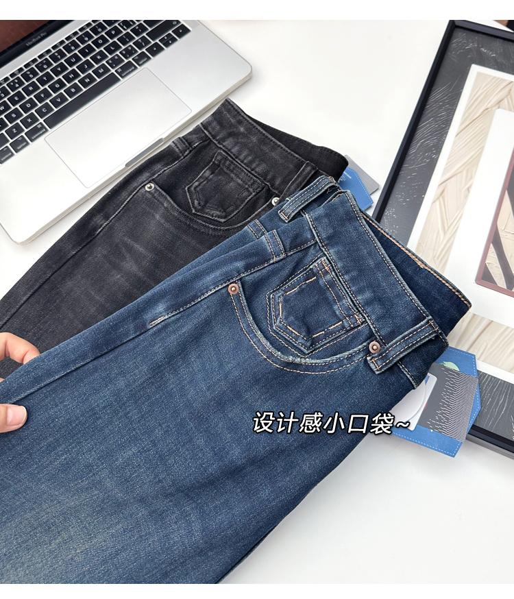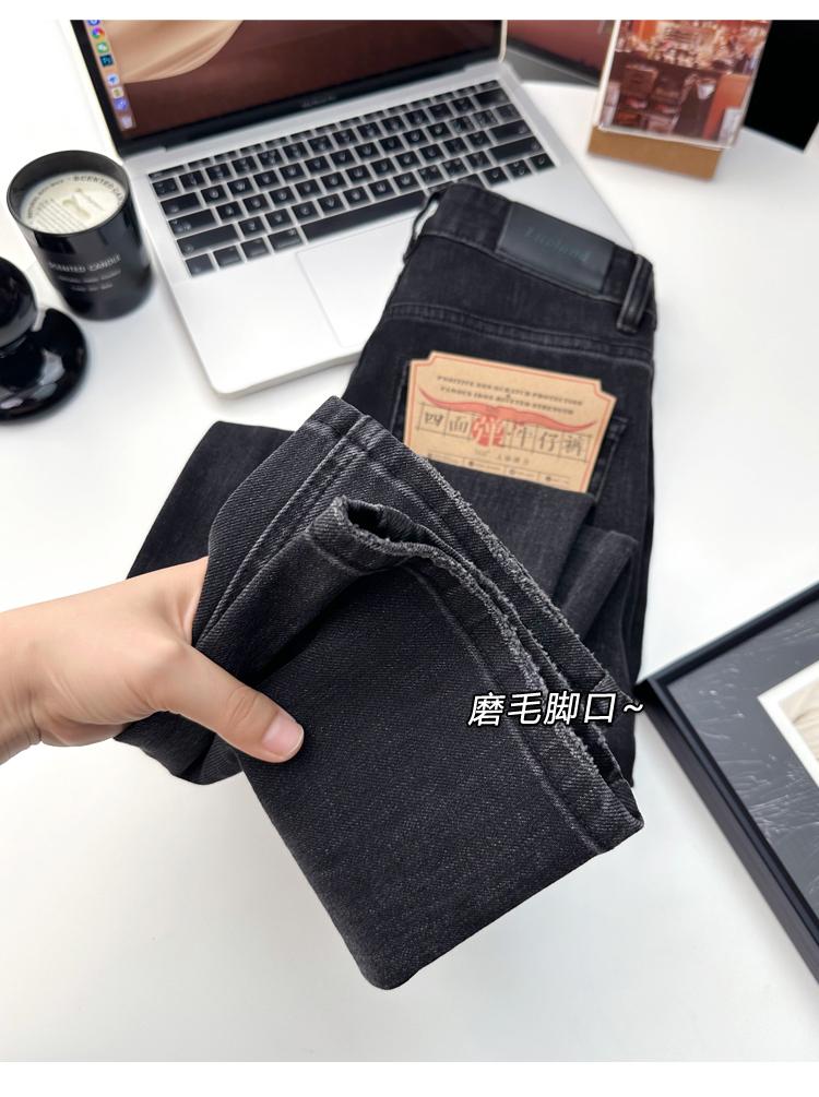 Calças pequenas e amigáveis! Jeans estilo ocidental com quatro lados, tingido de preto e cinza, com nove pontas, estreito, tubo reto, baguette para mulheres