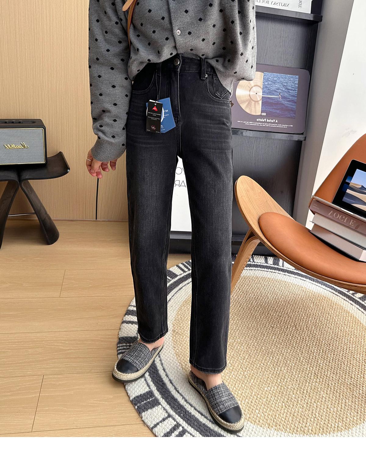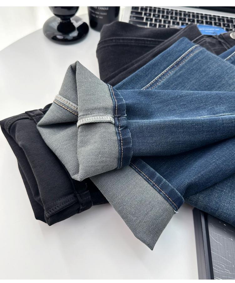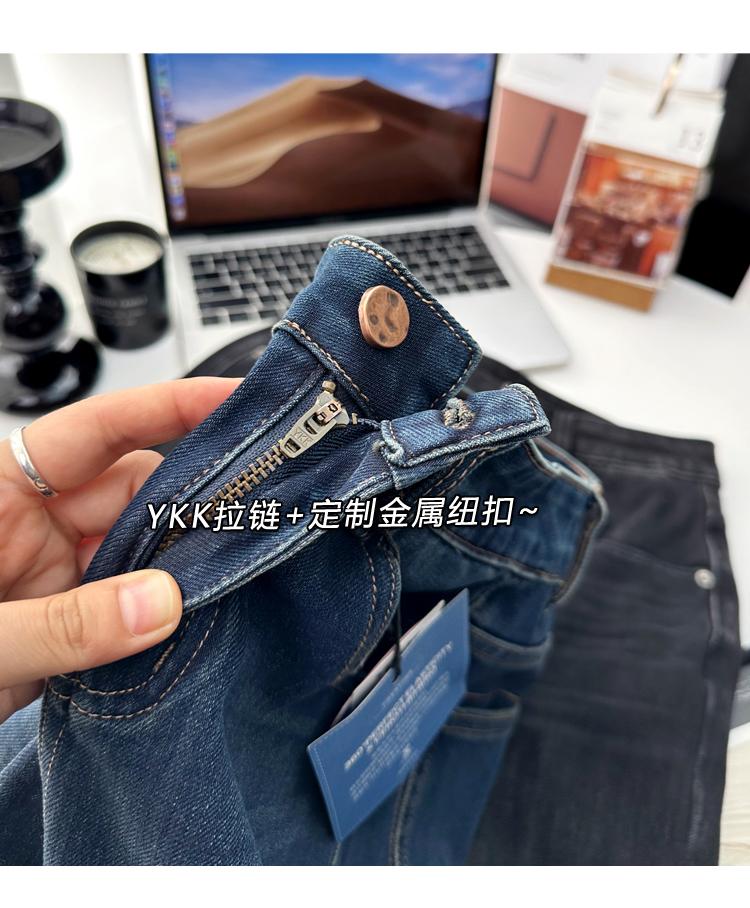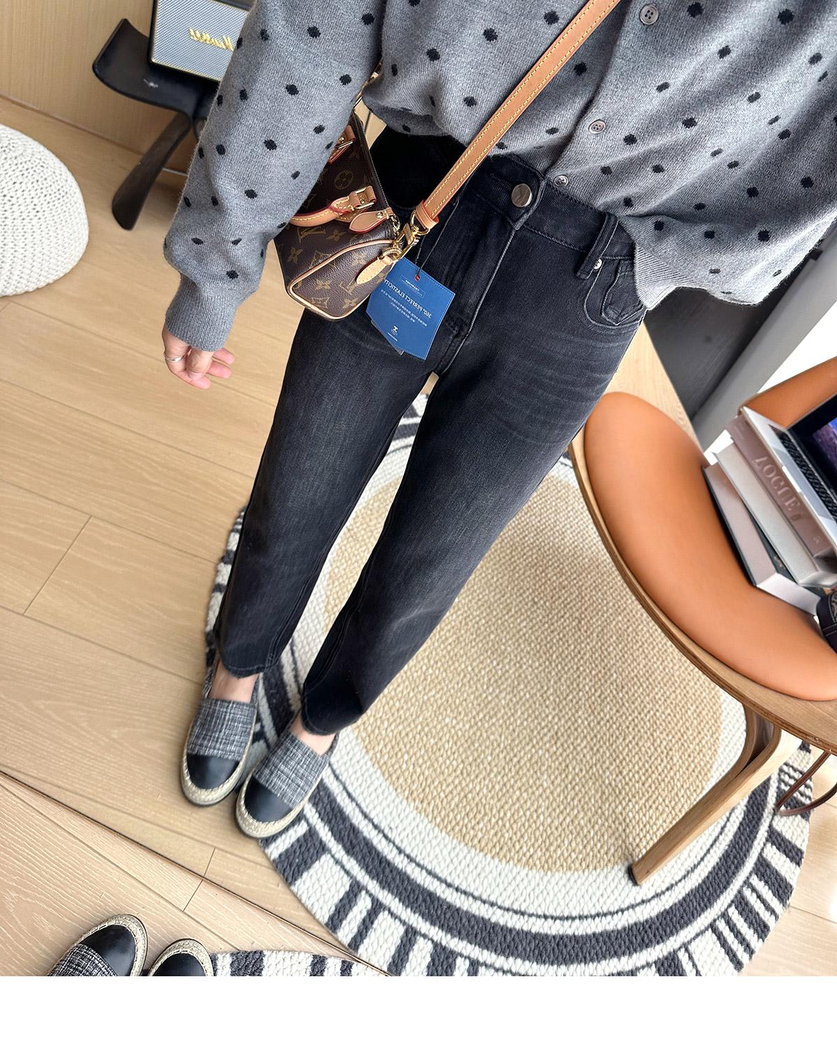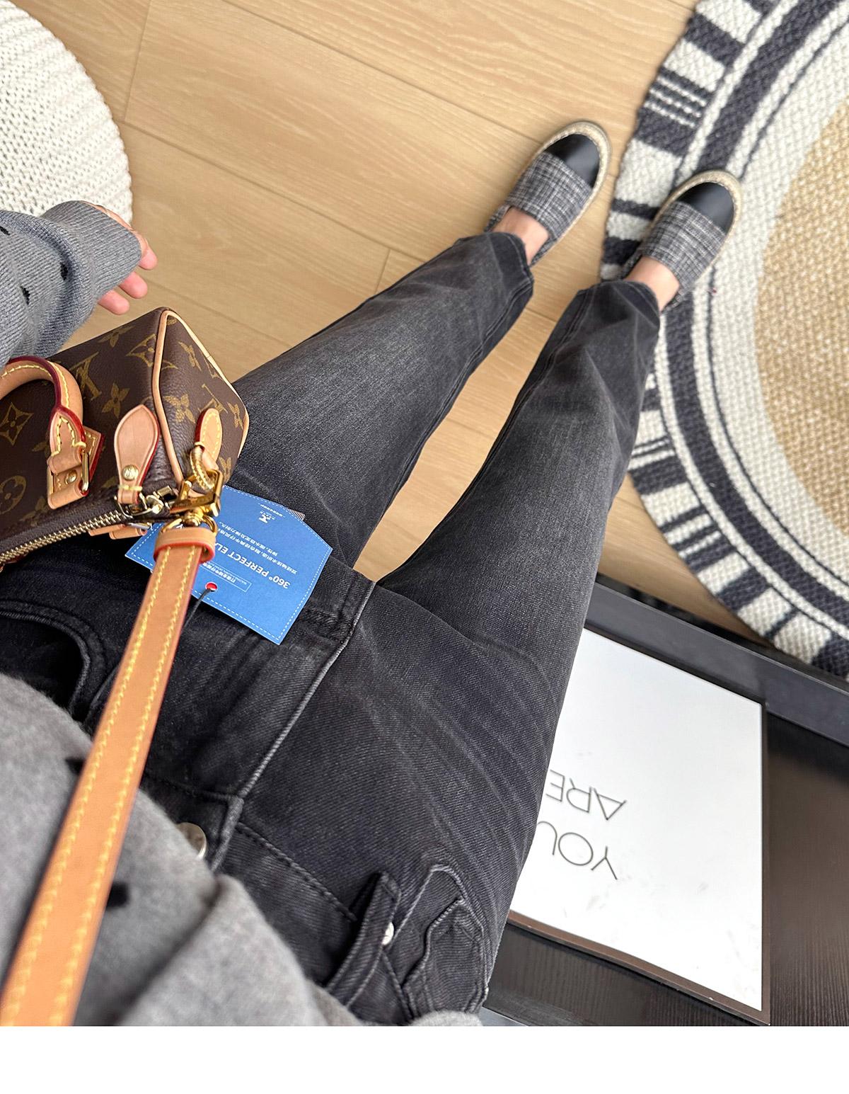 Calças pequenas e amigáveis! Jeans estilo ocidental com quatro lados, tingido de preto e cinza, com nove pontas, estreito, tubo reto, baguette para mulheres