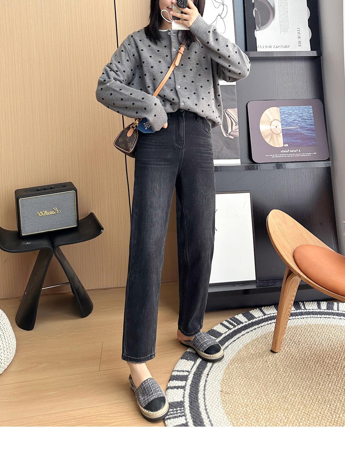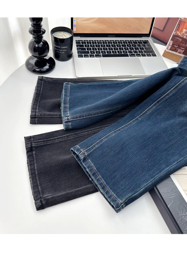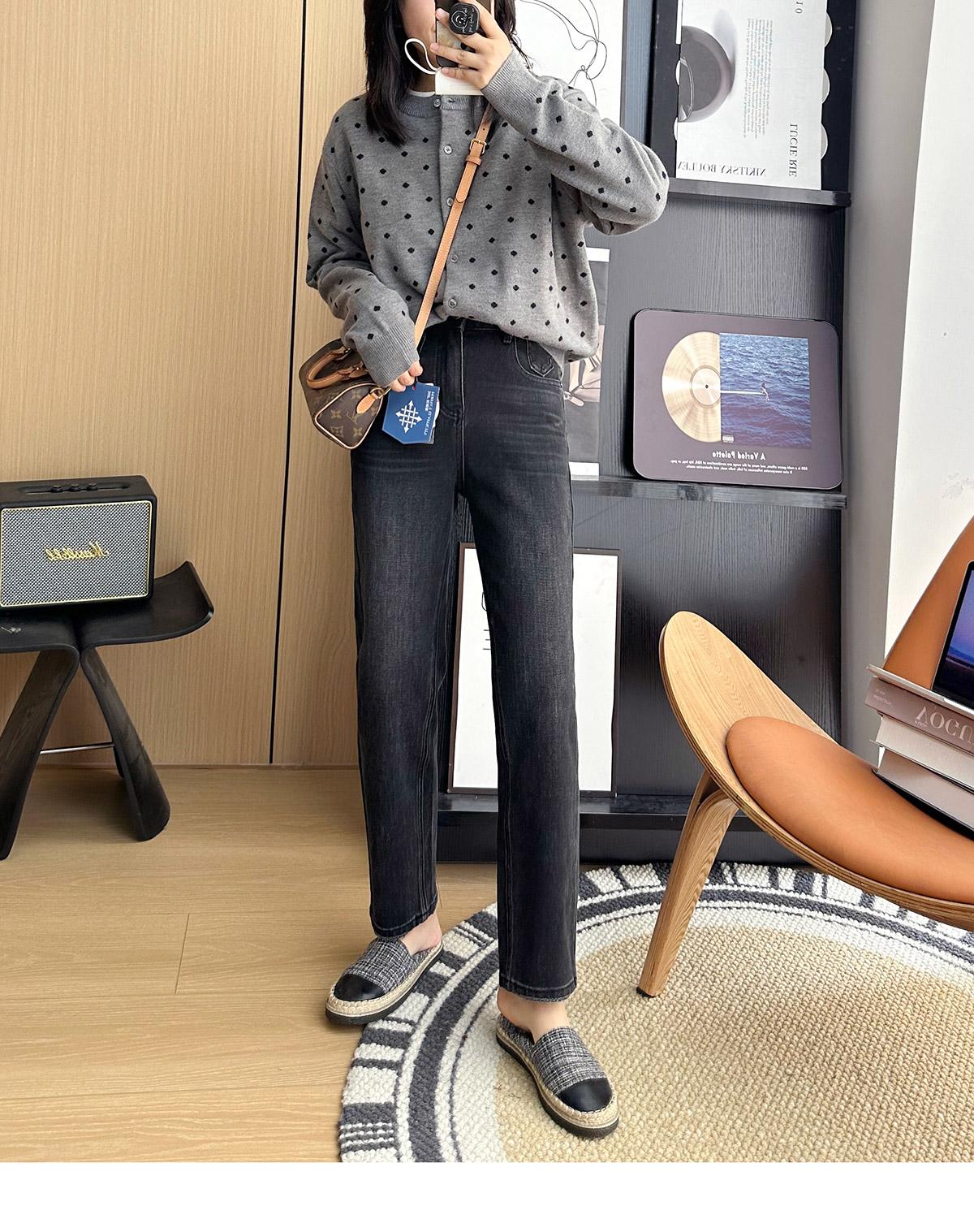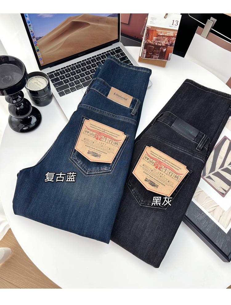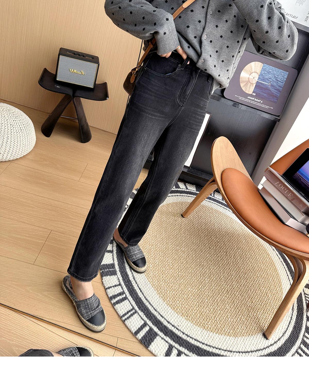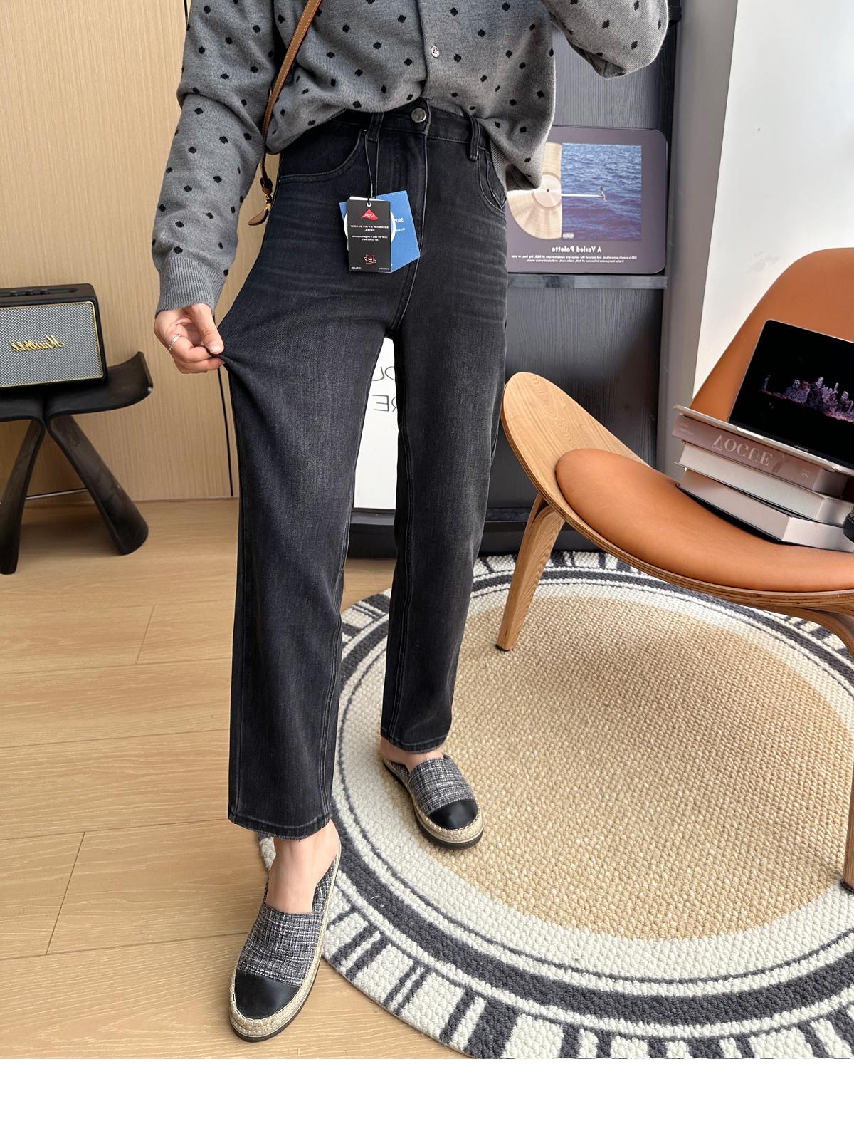 Calças pequenas e amigáveis! Jeans estilo ocidental com quatro lados, tingido de preto e cinza, com nove pontas, estreito, tubo reto, baguette para mulheres