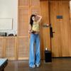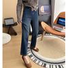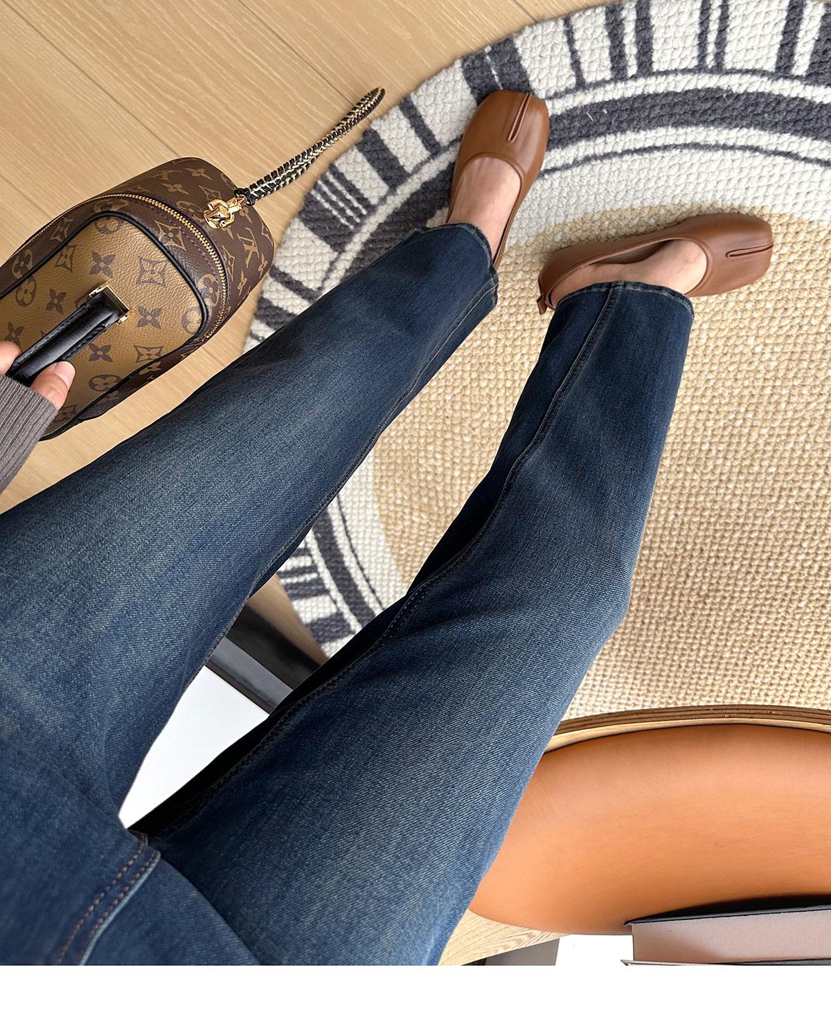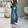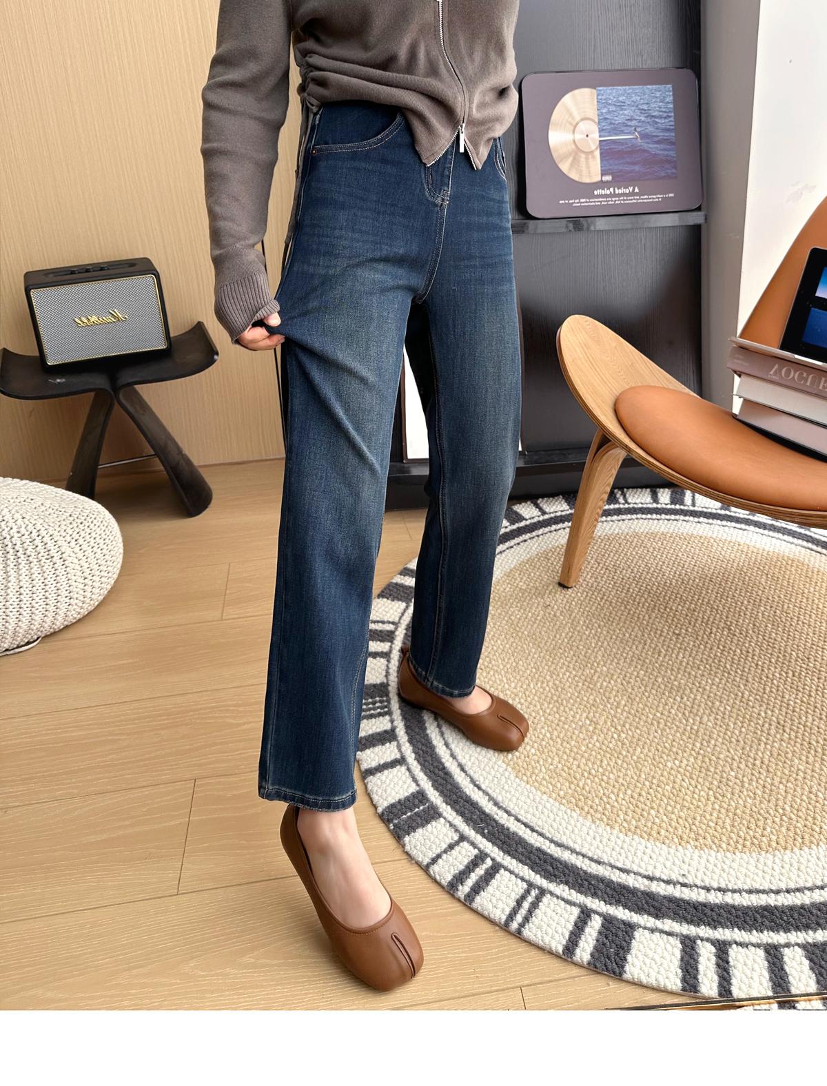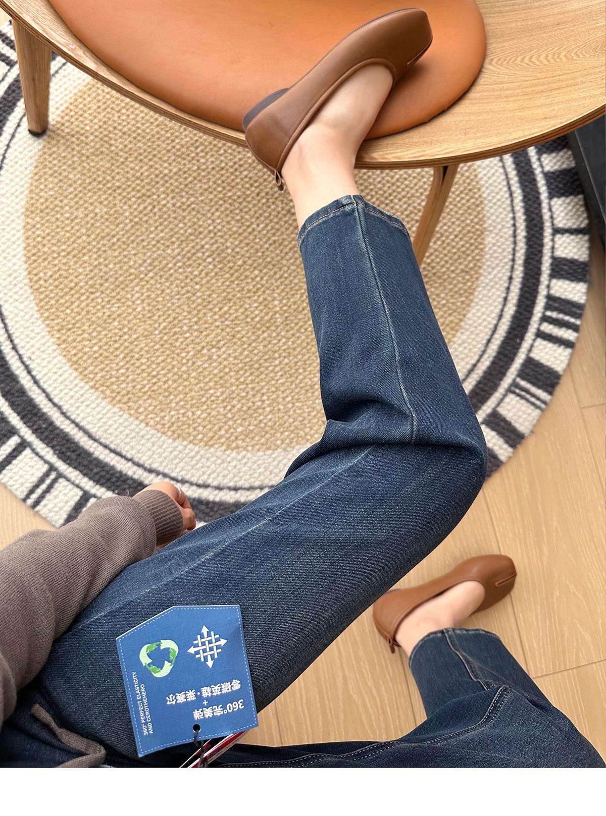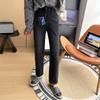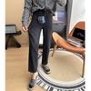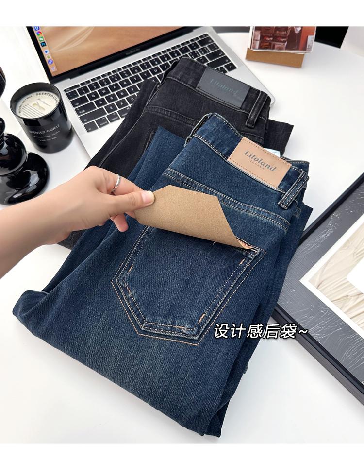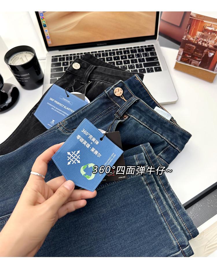 Calças pequenas e amigáveis! Jeans estilo ocidental com quatro lados, tingido de preto e cinza, com nove pontas, estreito, tubo reto, baguette para mulheres