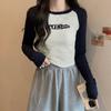 Outono 2025 Novo Produto Transfronteiriço Gola Redonda Slim Manga Longa Cor Contrastante Preto e Branco Elegante Roupa de Trabalho Curto Base Sobretudo Justo
