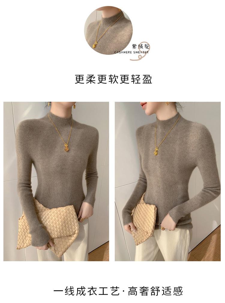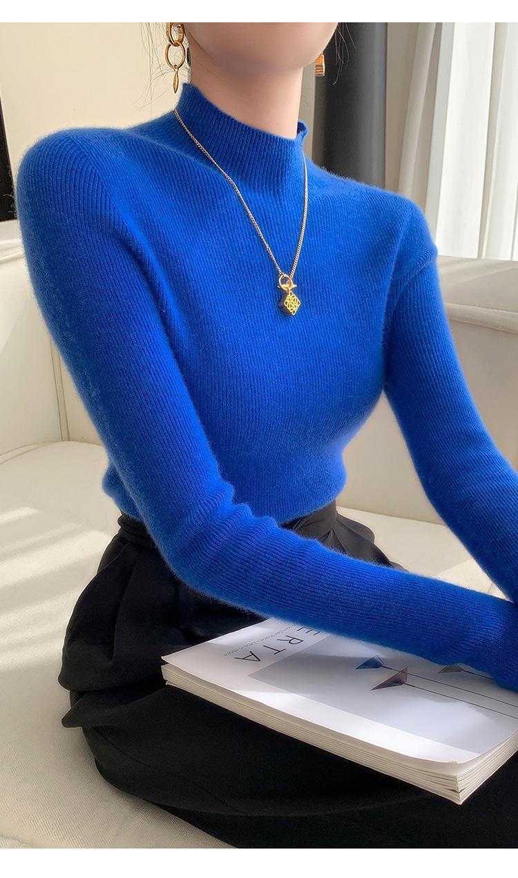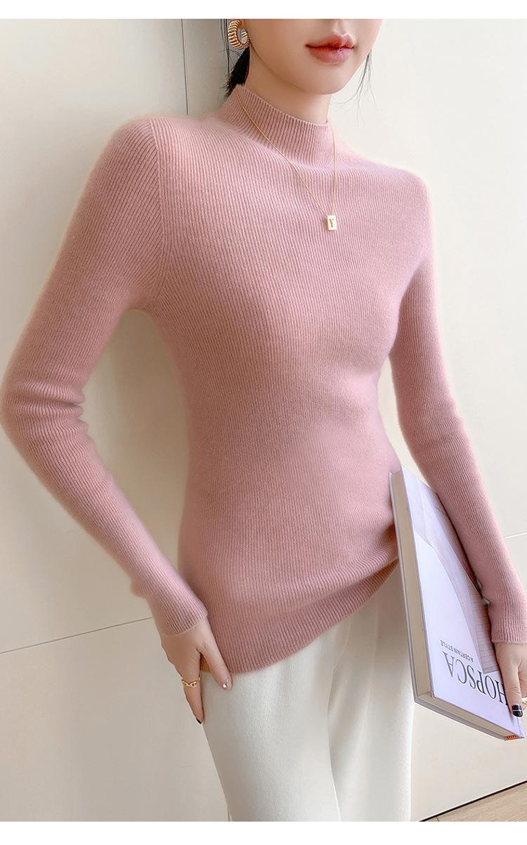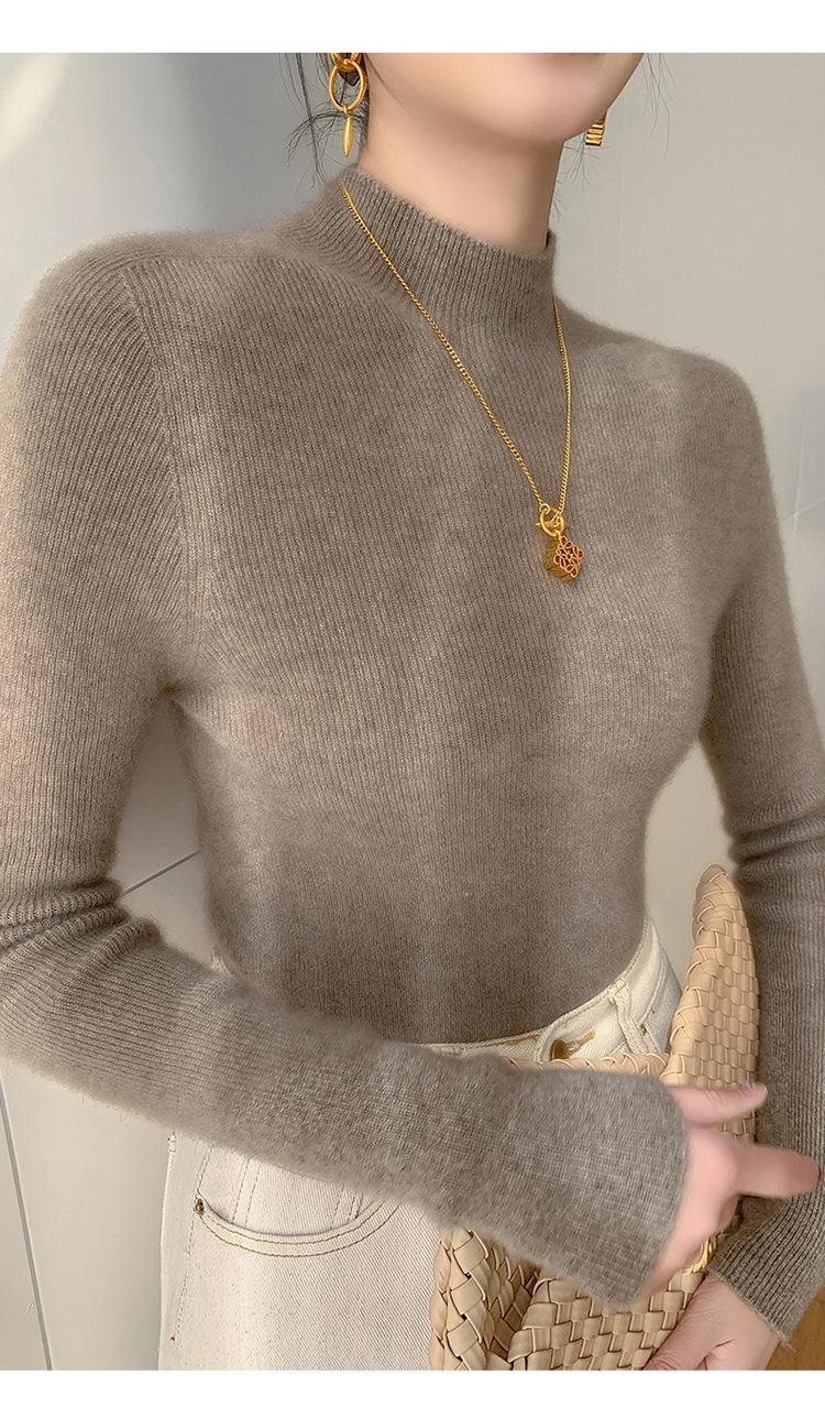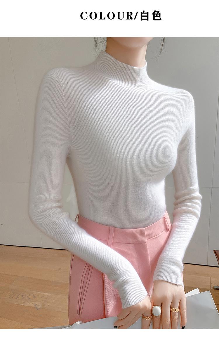 2025 Nuevo Tejido de Cachemira de Otoño e Invierno con Tejido de Punto de Moda Slim de Manga Larga para Mujer Cuello Alto Versátil