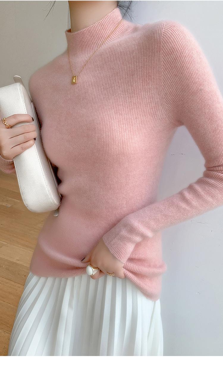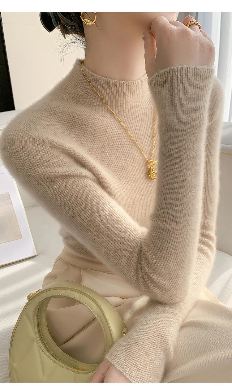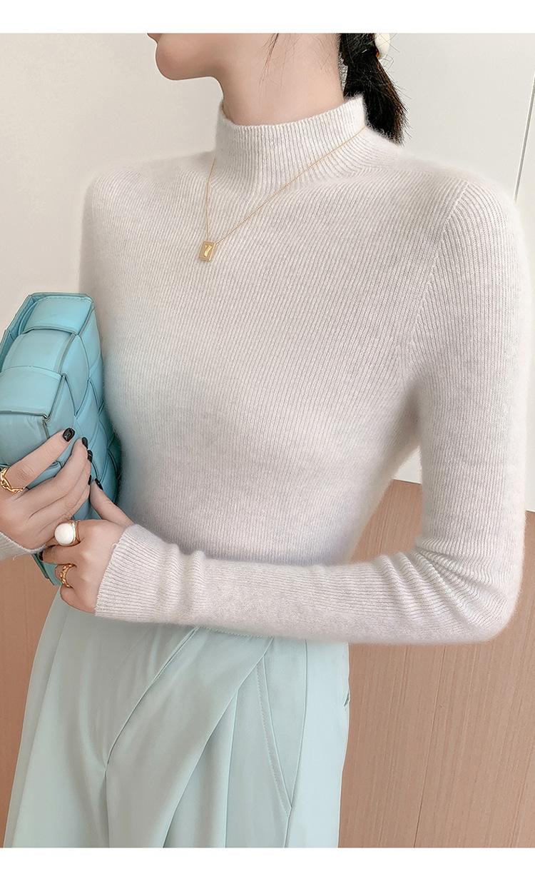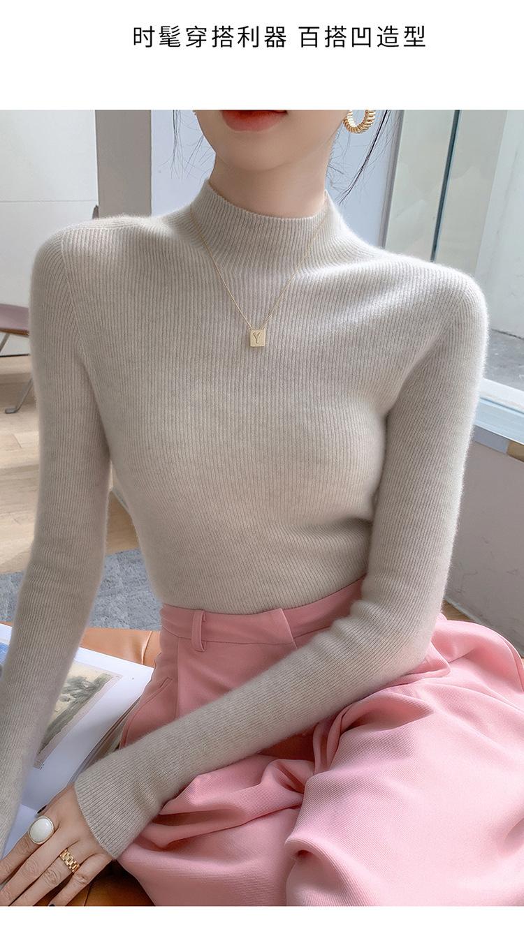 2025 Nuevo Tejido de Cachemira de Otoño e Invierno con Tejido de Punto de Moda Slim de Manga Larga para Mujer Cuello Alto Versátil