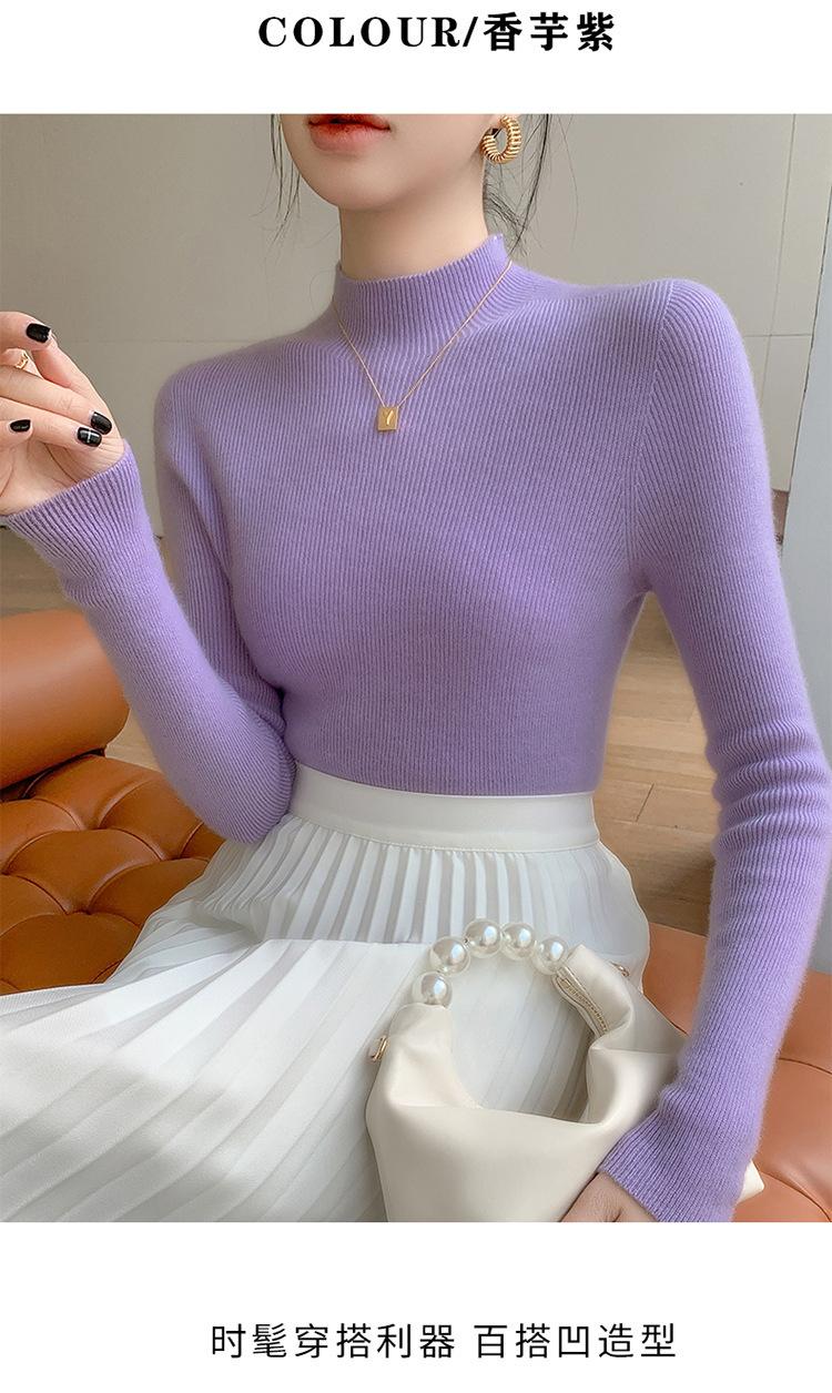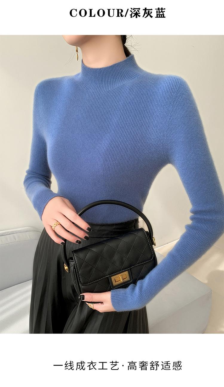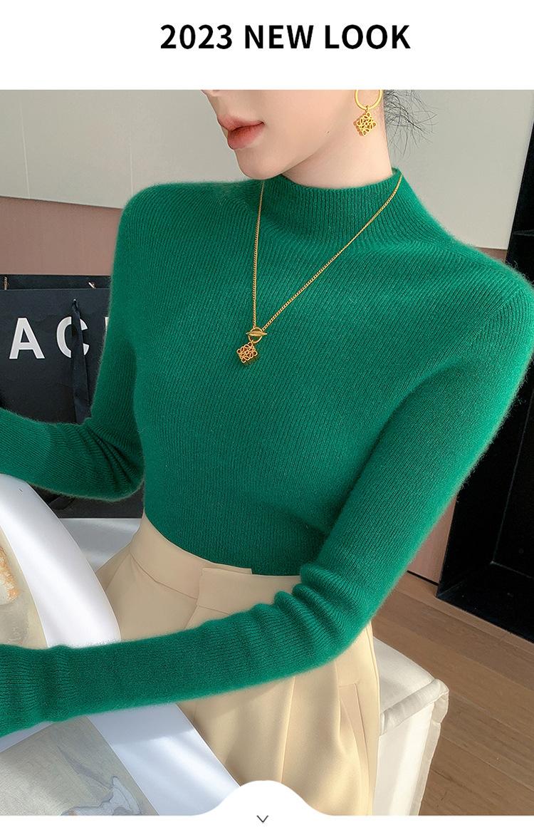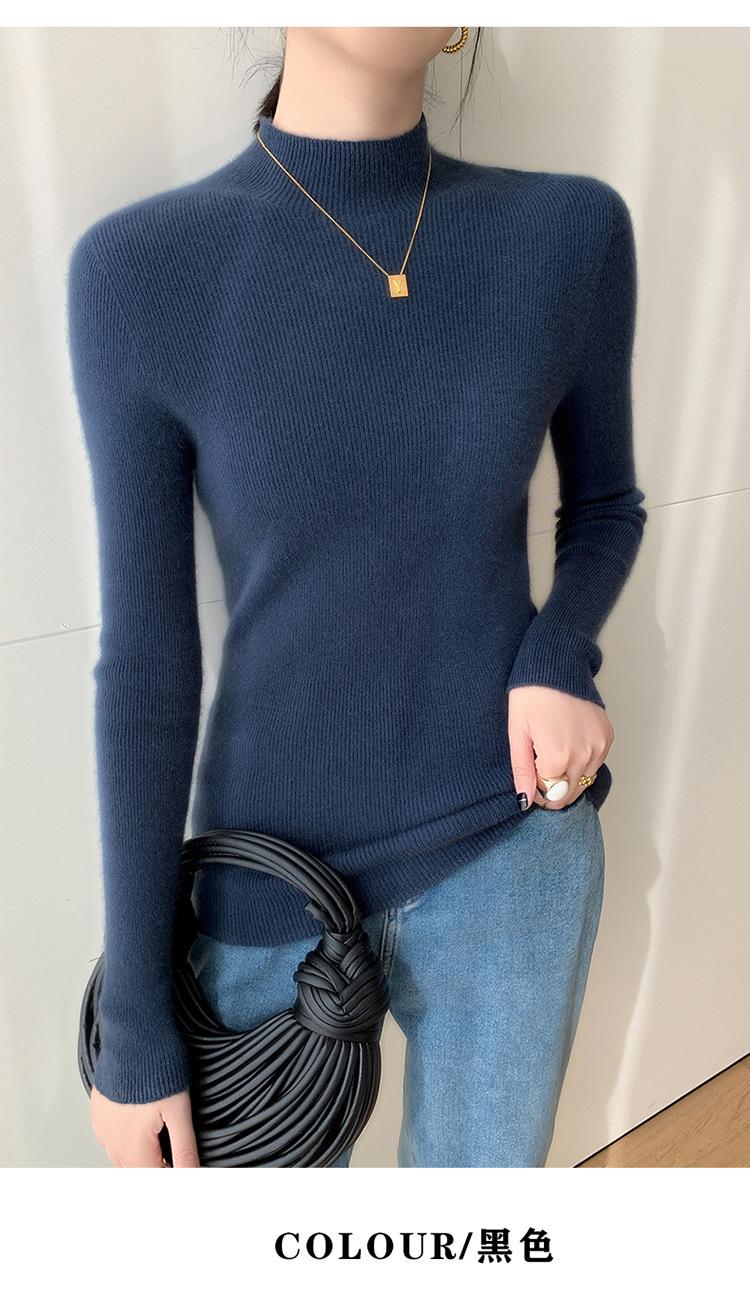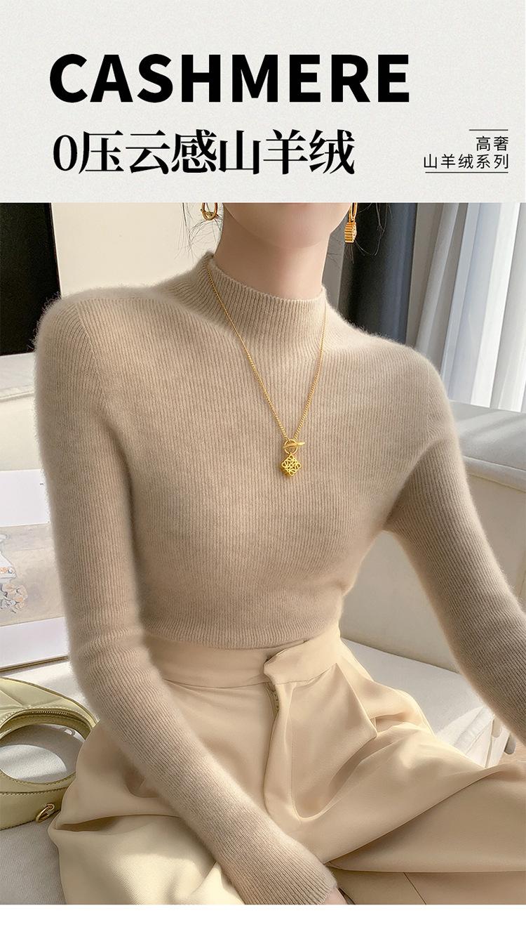 2025 Nuevo Tejido de Cachemira de Otoño e Invierno con Tejido de Punto de Moda Slim de Manga Larga para Mujer Cuello Alto Versátil