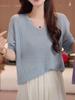 Outono Novo Estilo Coreano Simples All-match Solto Slim-fit Suéter de malha Hollow-out Mangas compridas Carne-coberto Base Suéter de malha para mulheres