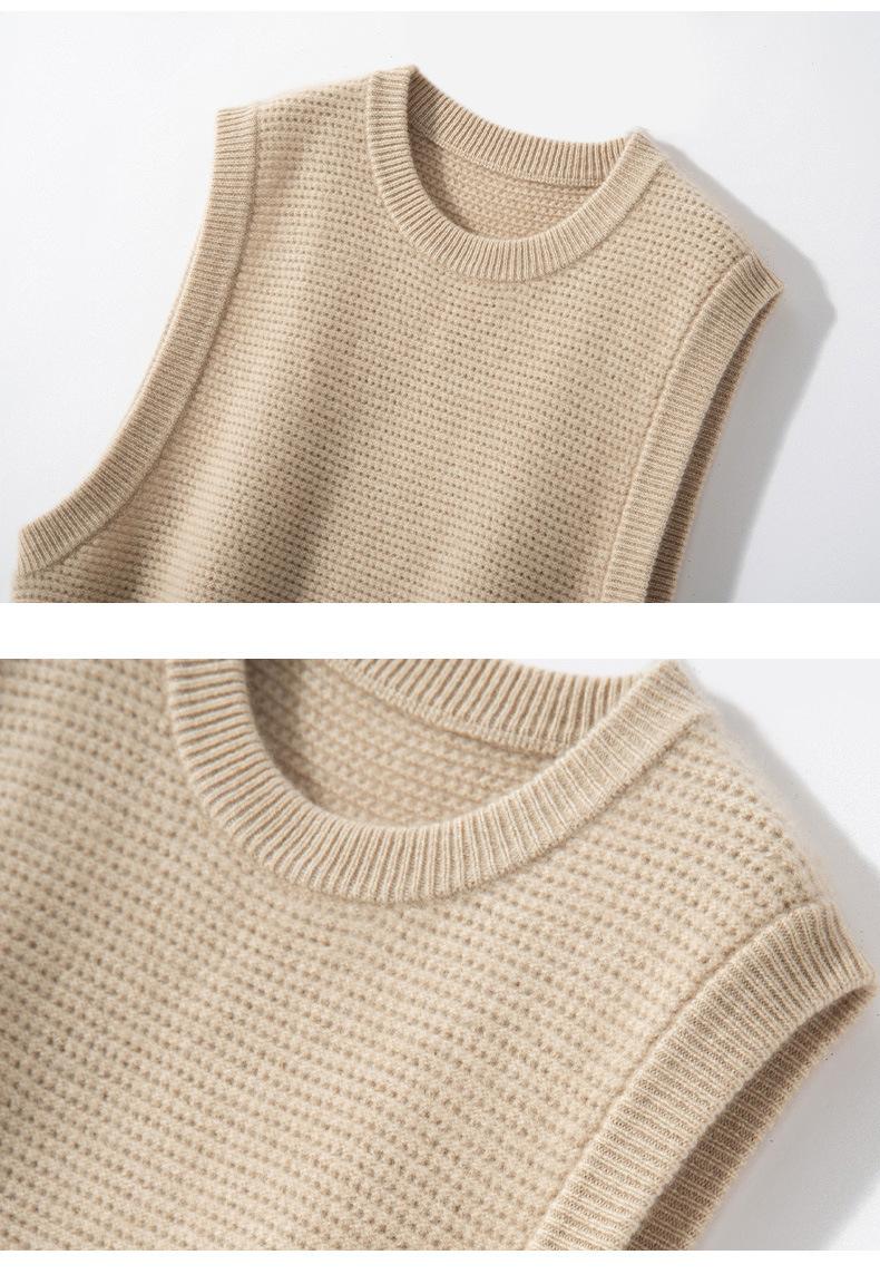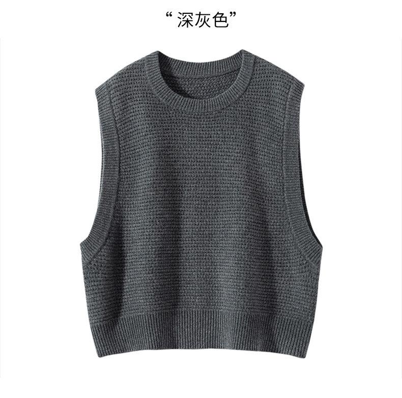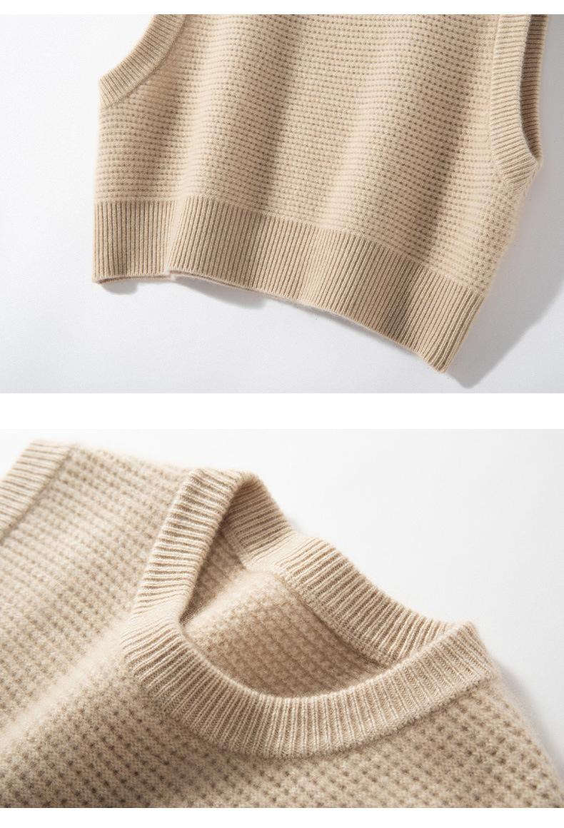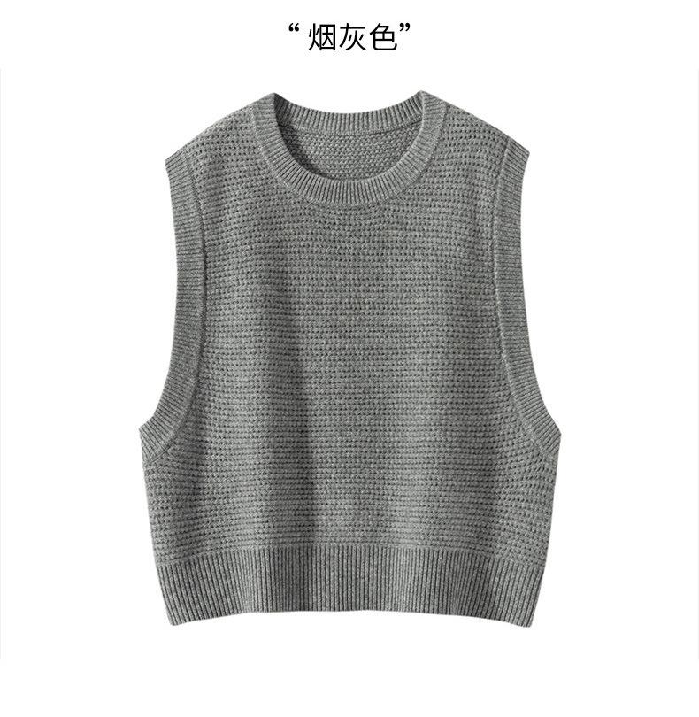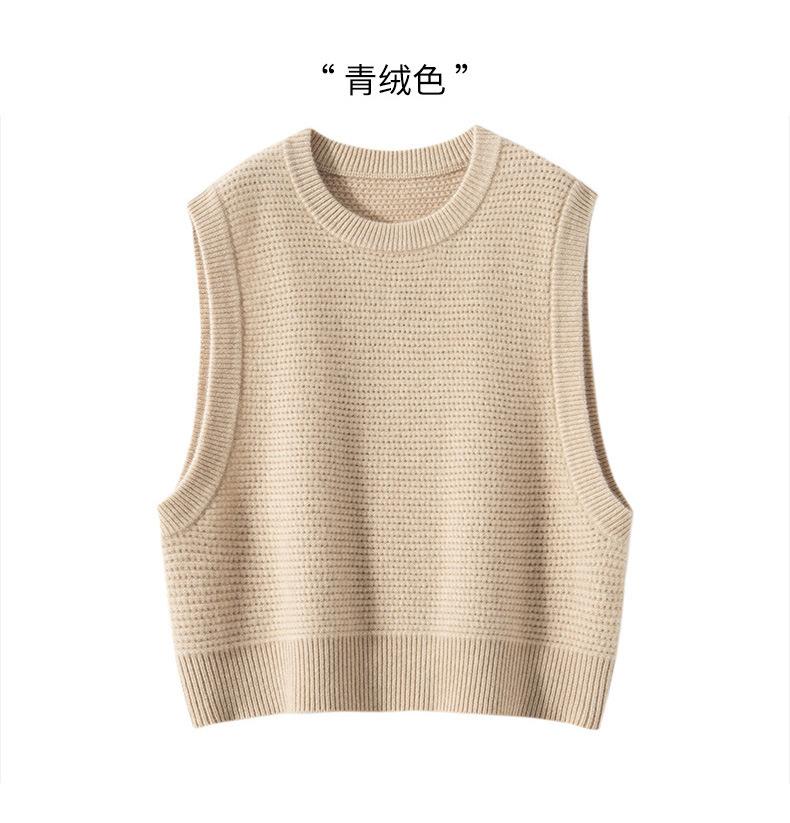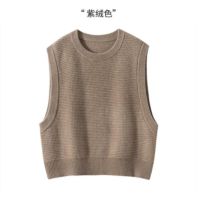 25 Novo Outono e Inverno 100 Caxemira Pura Abacaxi Agulha Espessado Colete Feminino Gola Redonda Pulôver Curto Empilhado Colete