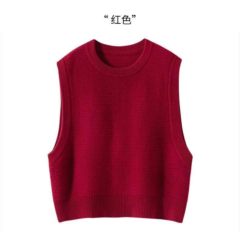 Novo outono e inverno 100% puro cashmere suéter abacaxi malha colete para mulheres | gola redonda curto camada malha colete para mulheres
