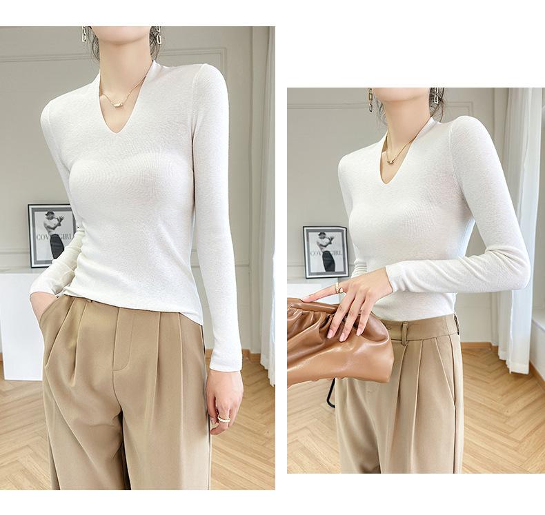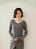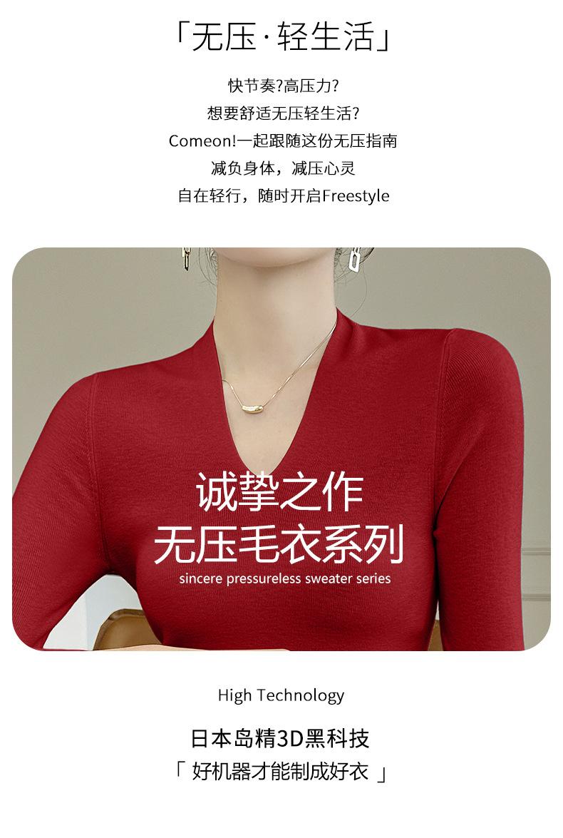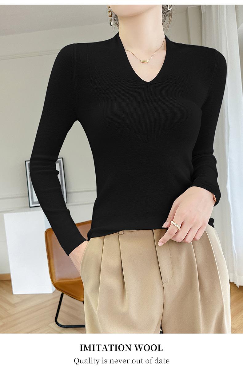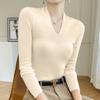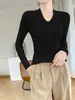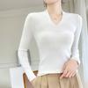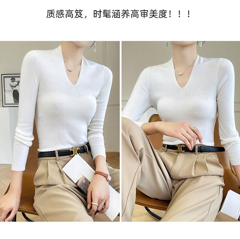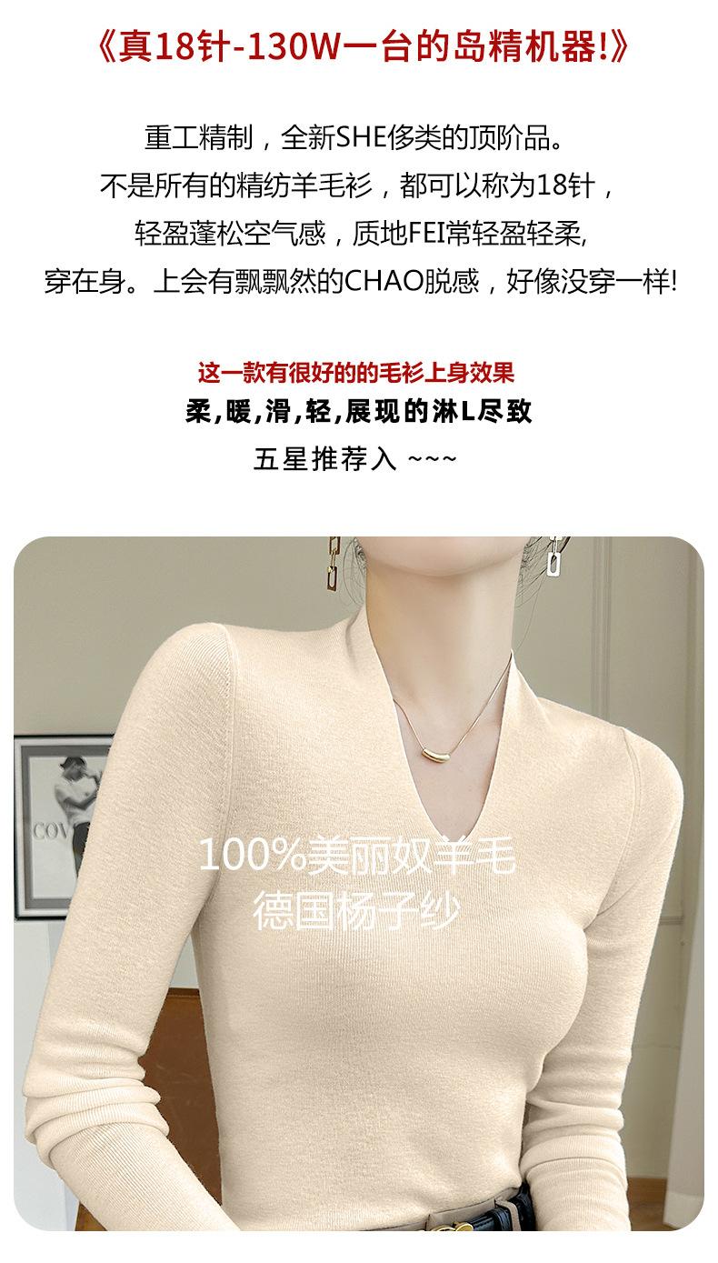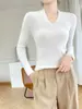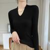 Outono e inverno novo suéter feminino de lã pura 100% penteada com decote em V, slim fit, base da moda, suéter fino de malha