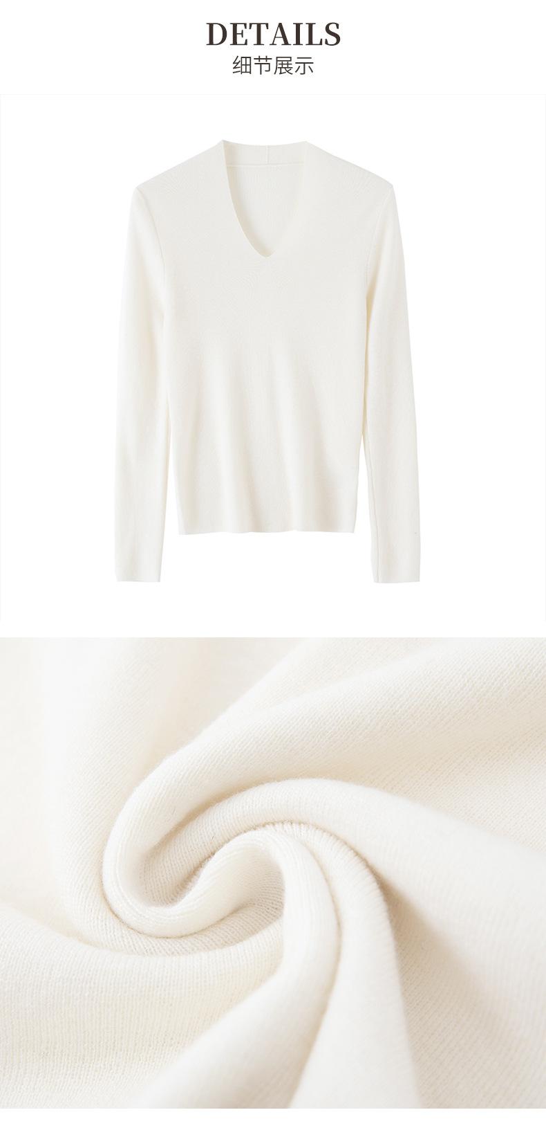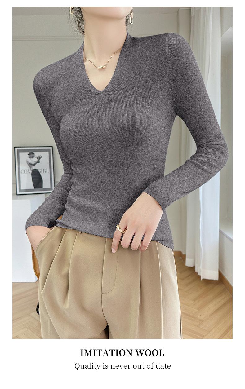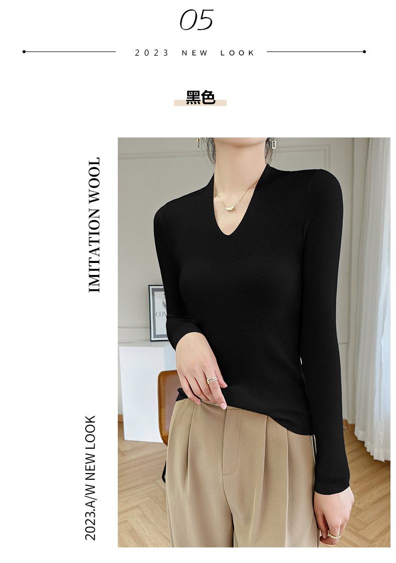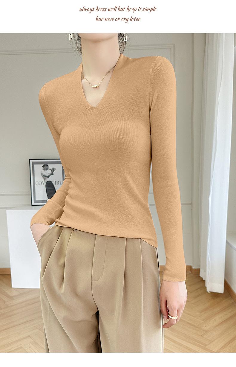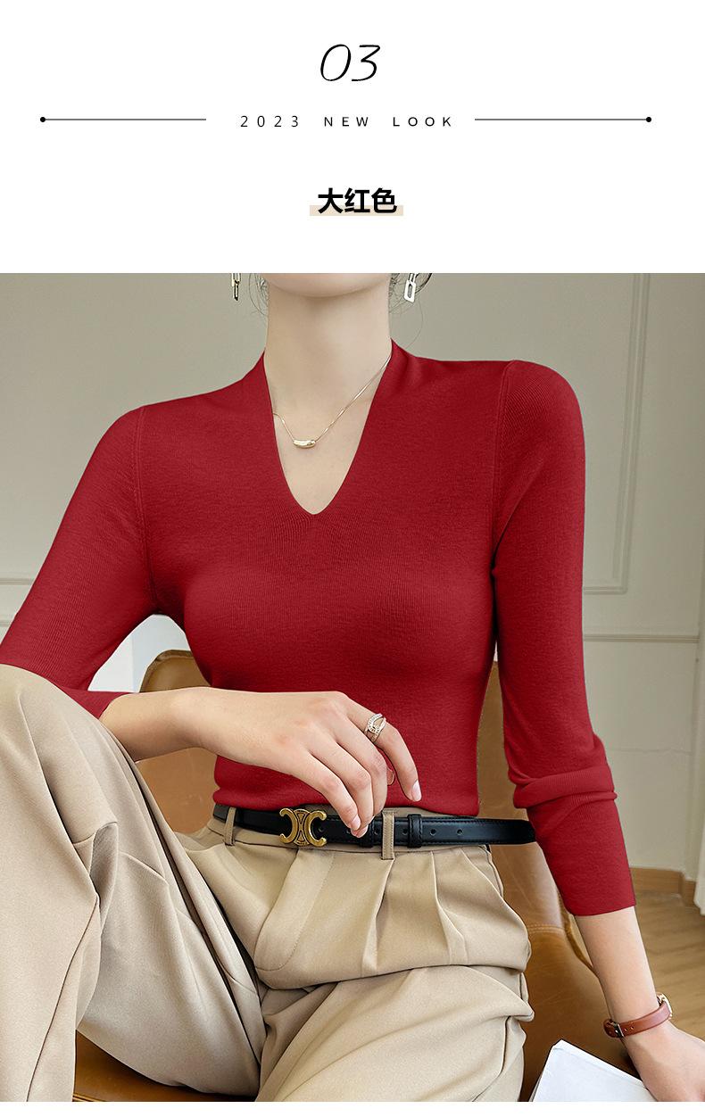Outono e inverno novo suéter feminino de lã pura 100% penteada com decote em V, slim fit, base da moda, suéter fino de malha
