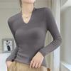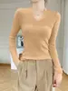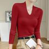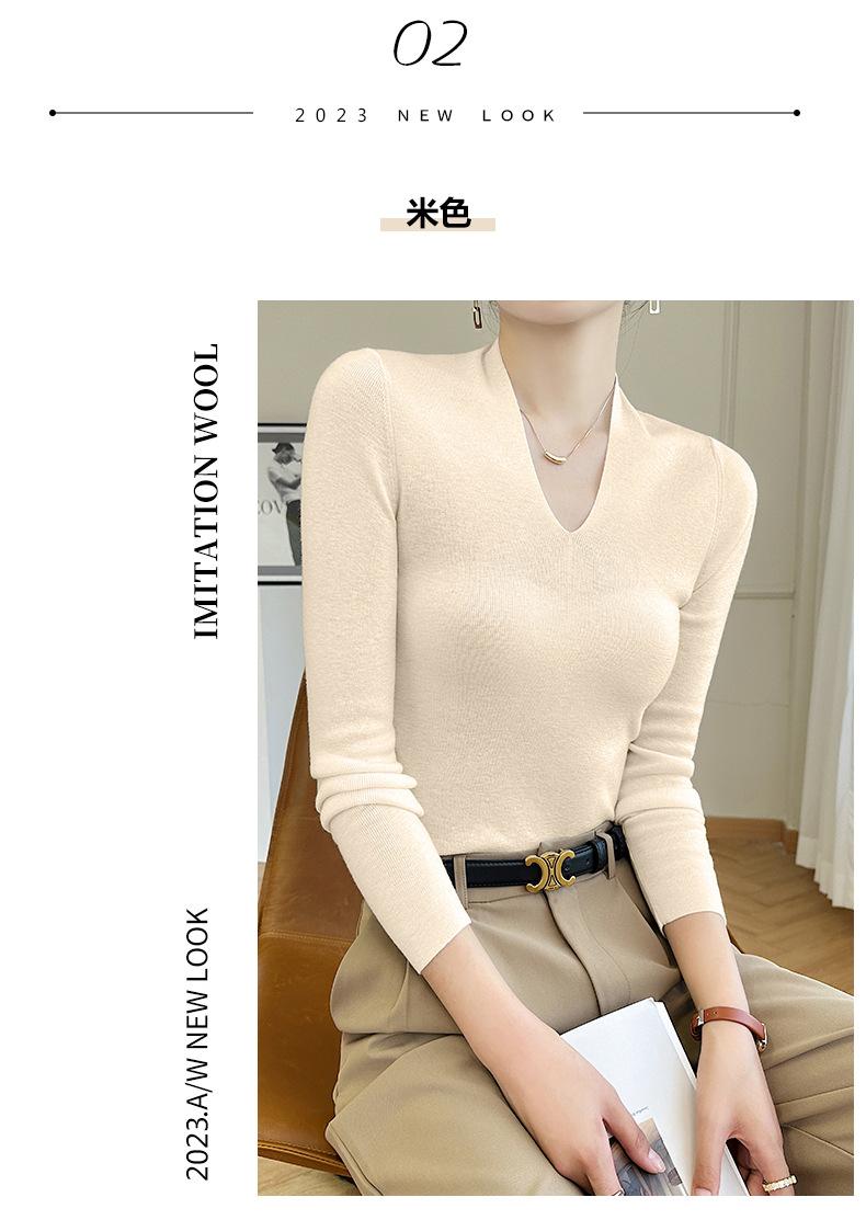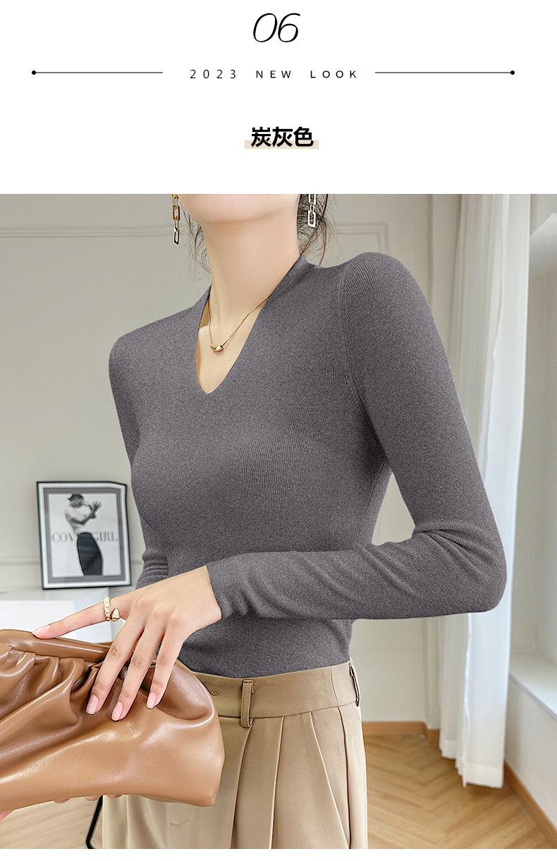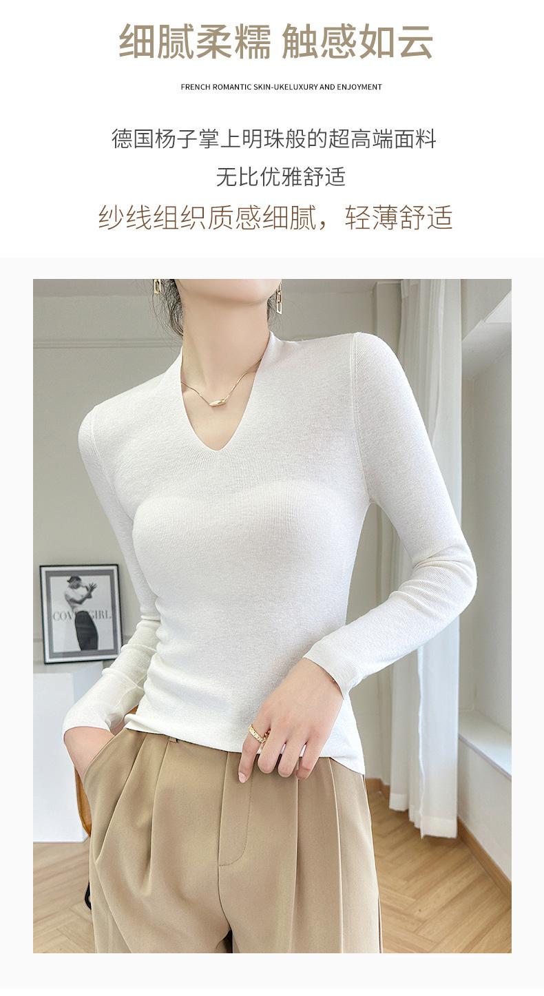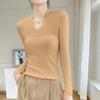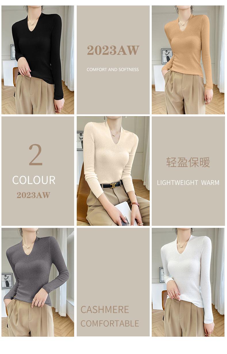 Outono e inverno novo suéter feminino de lã pura 100% penteada com decote em V, slim fit, base da moda, suéter fino de malha
