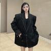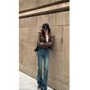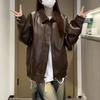 Jaqueta de Couro Marrom Retrô Americana Feminina Outono 2024 Novo Terno Portador Estilo Executivo de Alto Nível