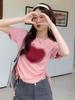 Top Curto Feminino Verão Novo Estilo Doce e Quente Cintura Alta Impresso Camiseta de Manga Curta Nicho Cordão Puro Algodão Ombro Camiseta